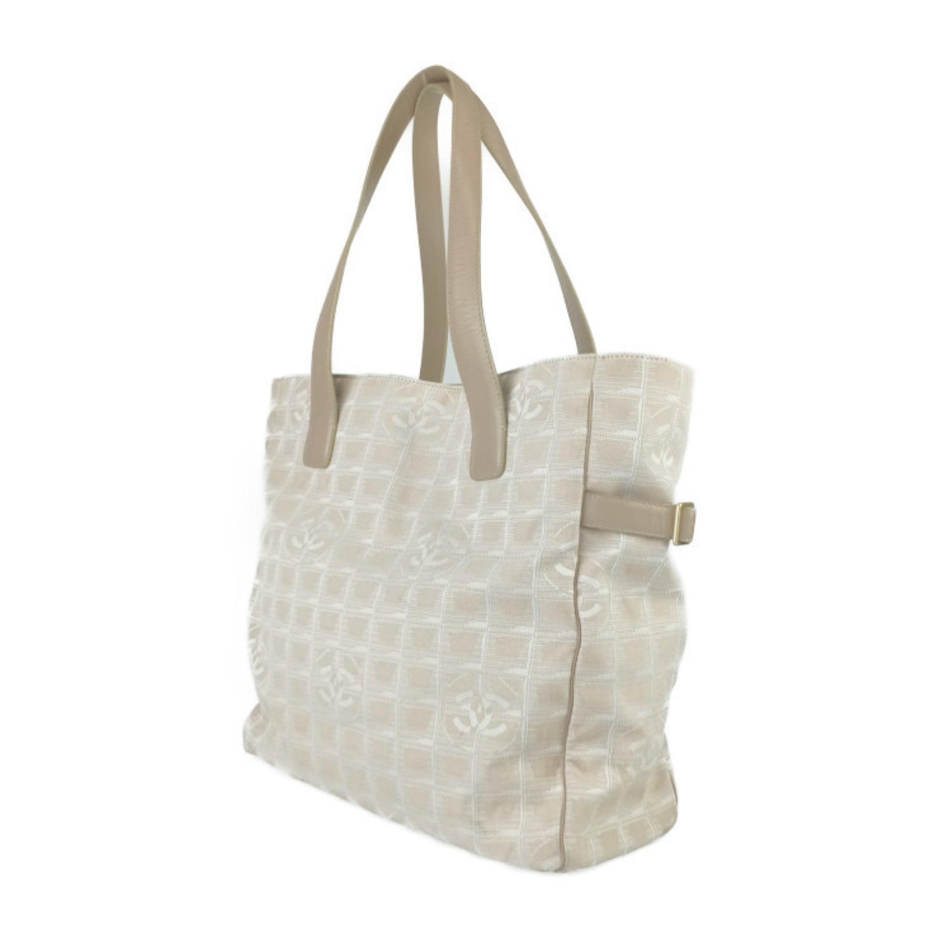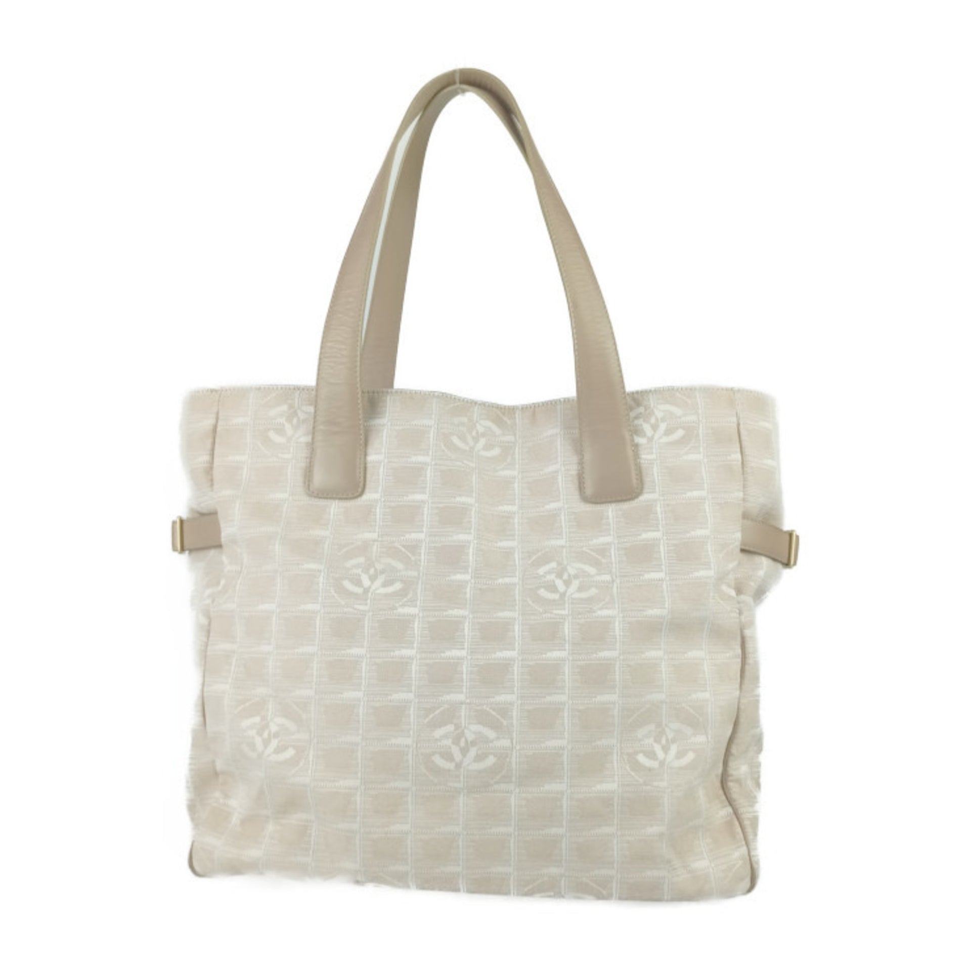 CHANEL New Travel Tote GM A15825 Beige Canvas Leather Women\'s Shoulder Bag