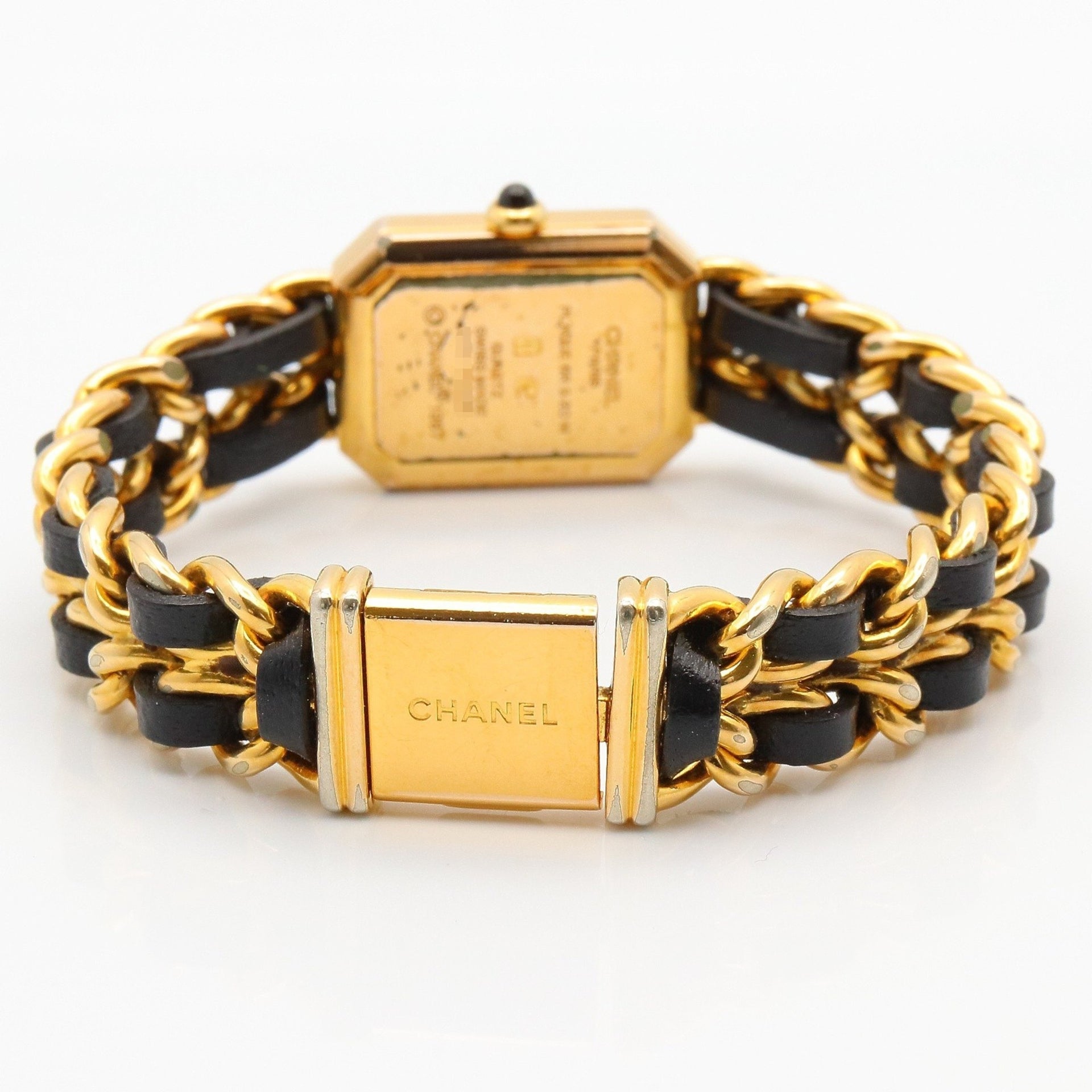 CHANEL Premiere L Watch, GP (Gold Plated), Leather, Women\'s, Black, H0001