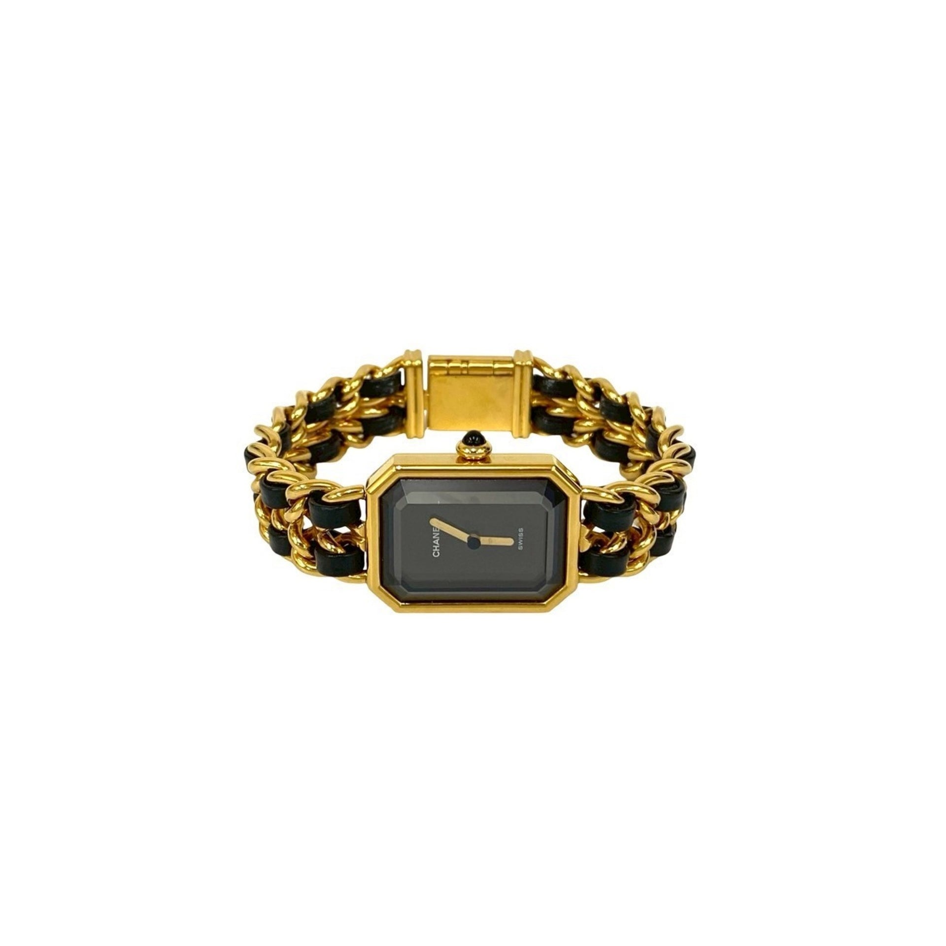 CHANEL Premiere M size quartz stainless steel leather wristwatch gold black 38479