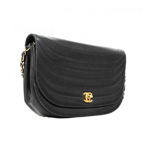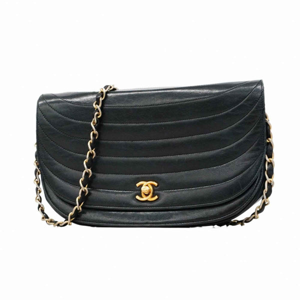 Chanel Shoulder Bag, Chain Half Moon Lambskin, Black, Women\'s, P1455778