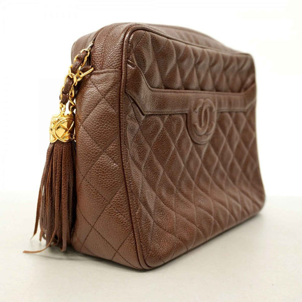Chanel Shoulder Bag with Matelasse Chain Bag, Caviar Skin, Brown, Women\'s