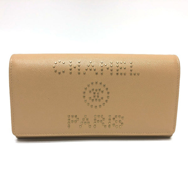 CHANEL Studded Logo Bifold Long Wallet in Caviar Leather, Beige