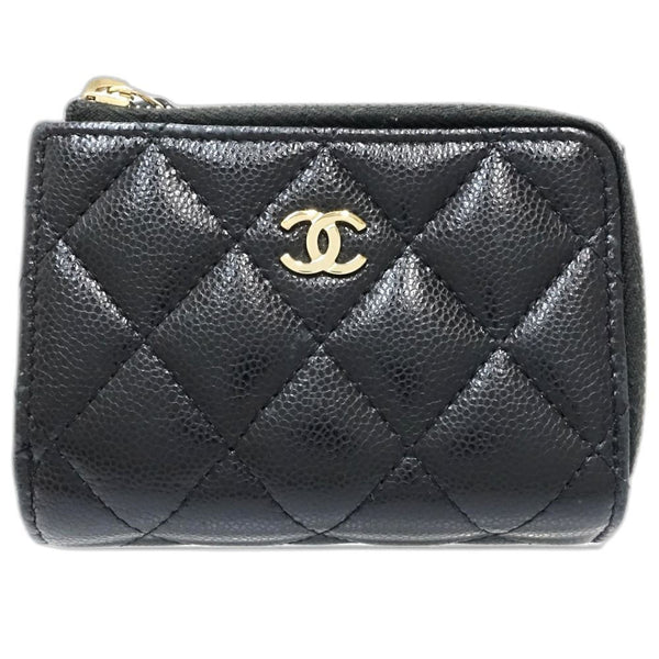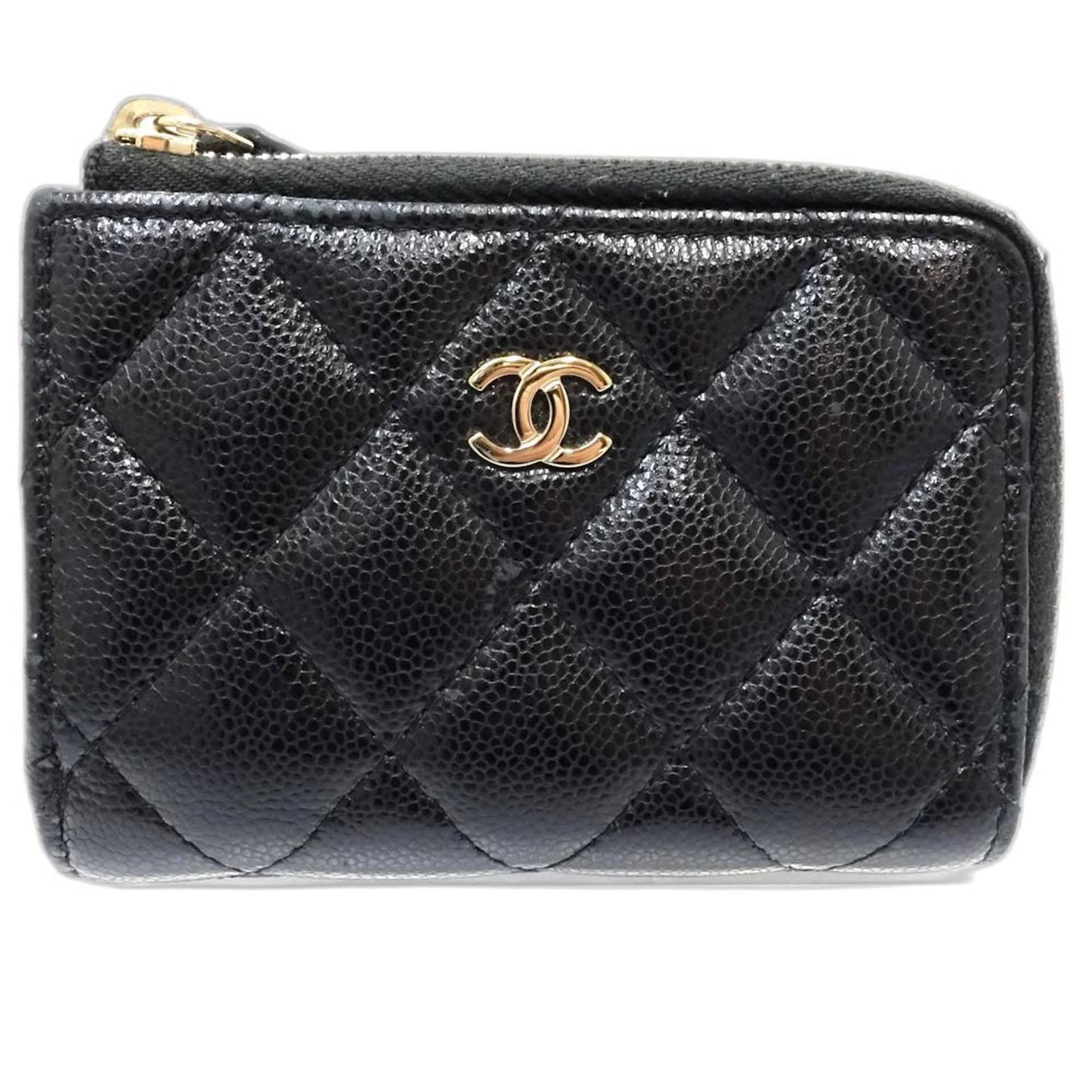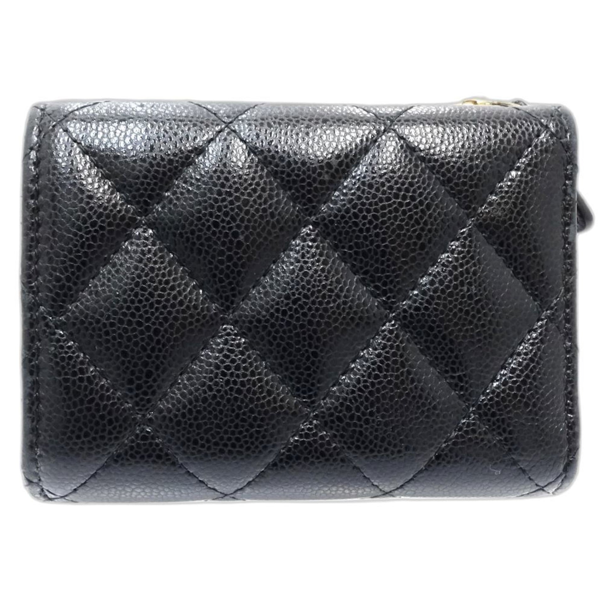 CHANEL Tri-fold Wallet AP3177 Timeless Classic Matelasse Caviar Leather Black Women\'s 181760