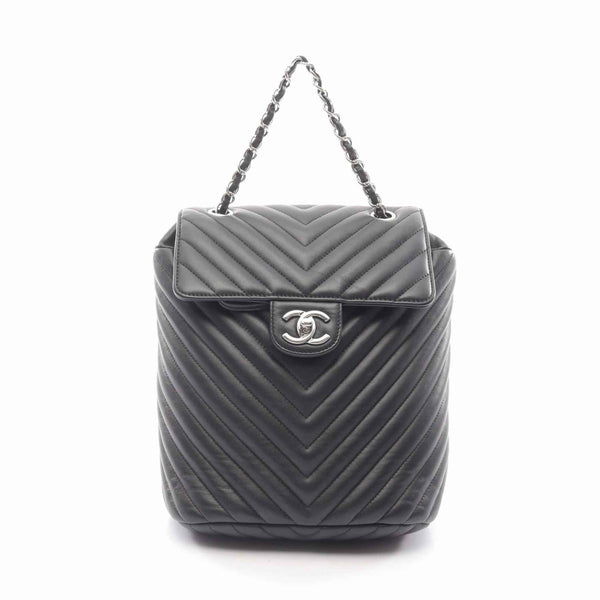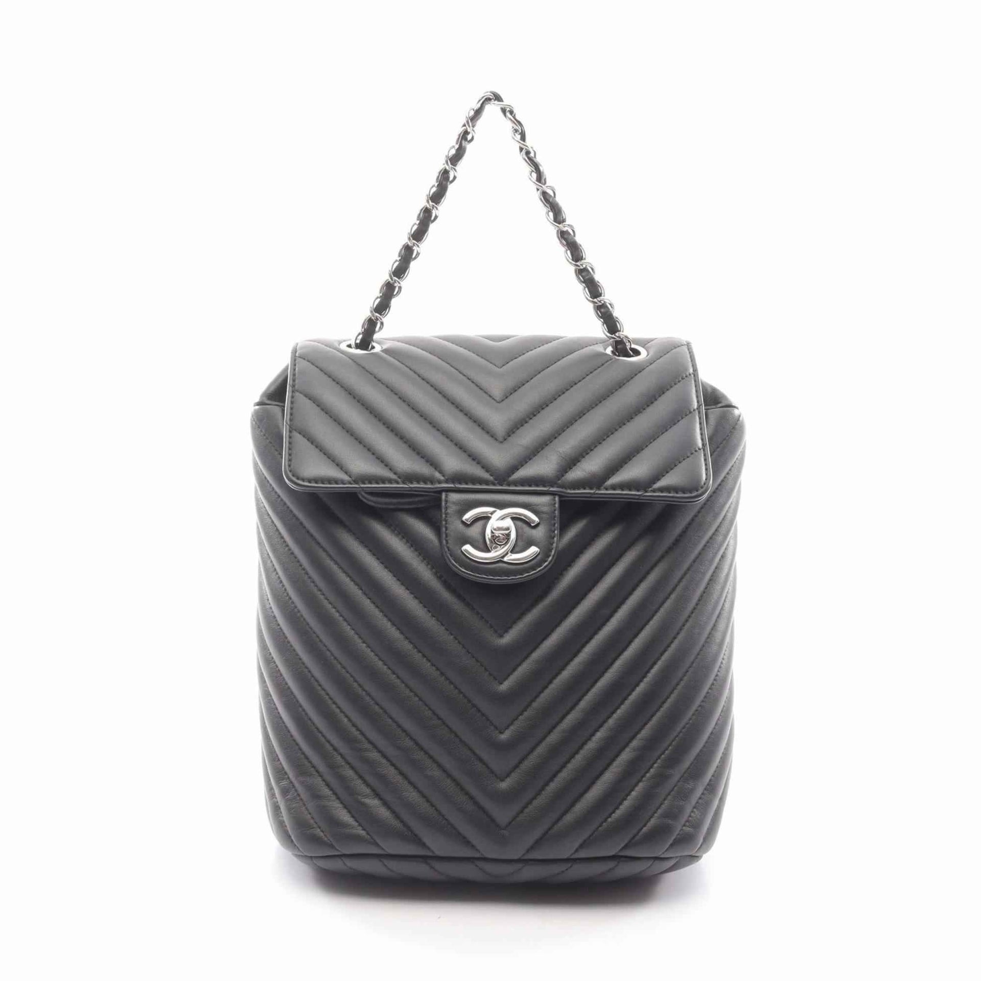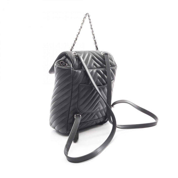 CHANEL V-Stitch Chevron Backpack Bag in Lambskin Leather, Black, Women\'s, A91121