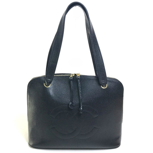 CHANEL Vintage Coco Mark CC Shoulder Bag in Caviar Leather, Black
