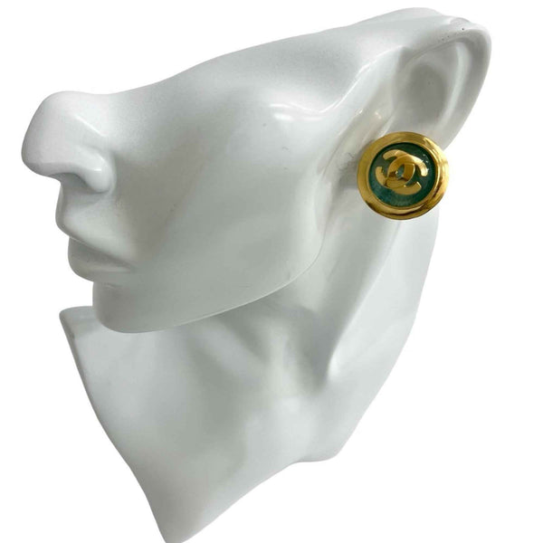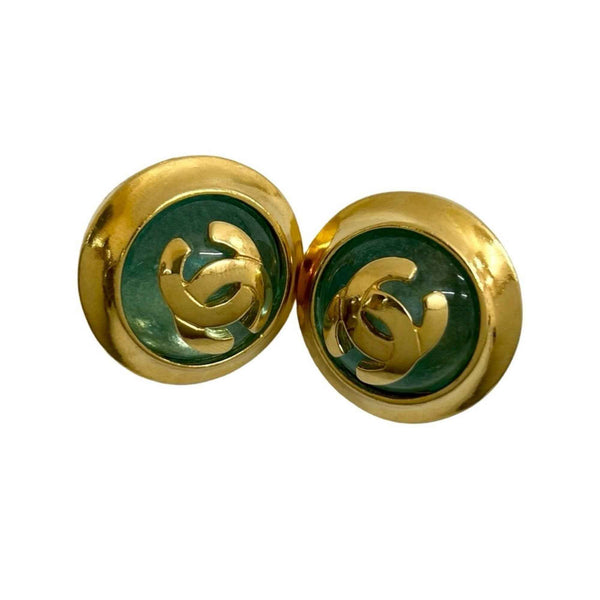 CHANEL Vintage Coco Mark Earrings and Ear Cuffs, Gold Light Blue, Size 28-10