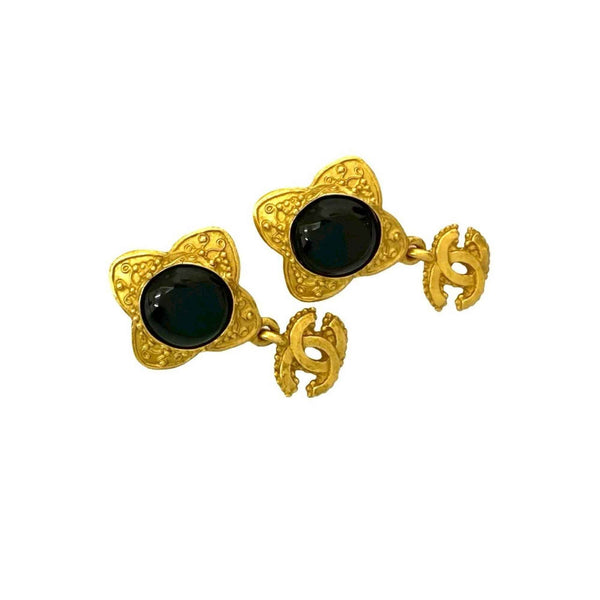 CHANEL Vintage Gripoa Coco Mark Motif Earrings, Gold, 41647