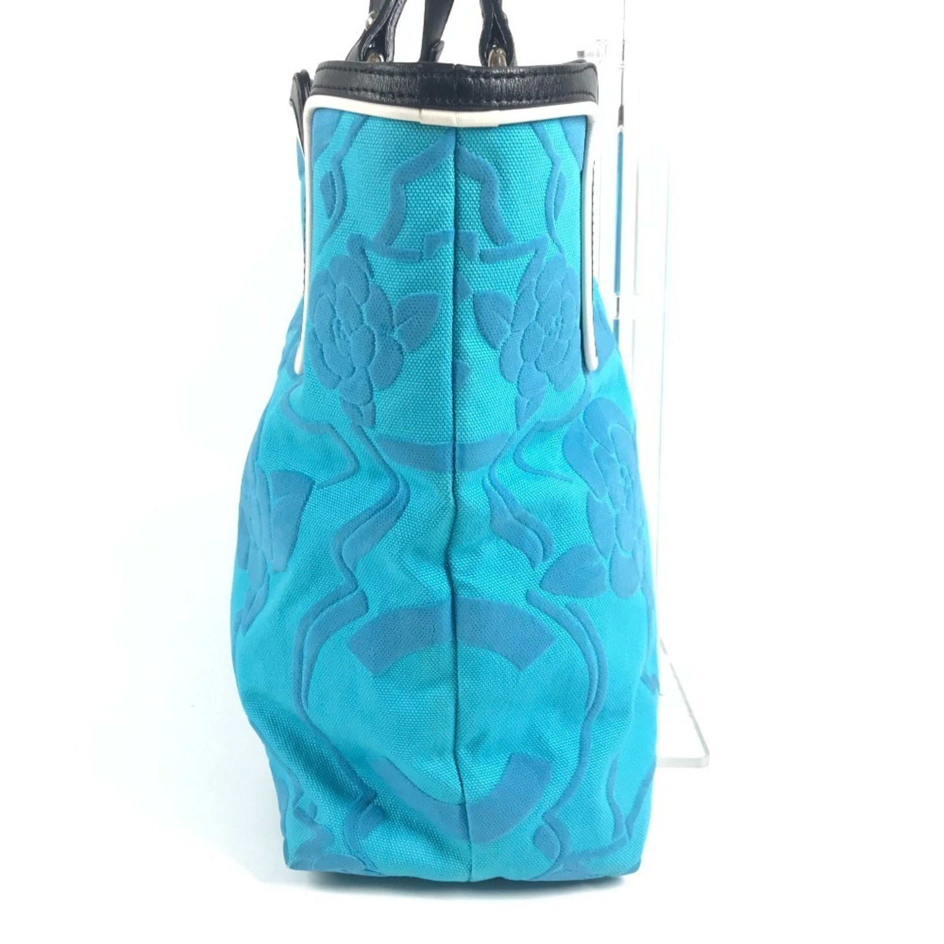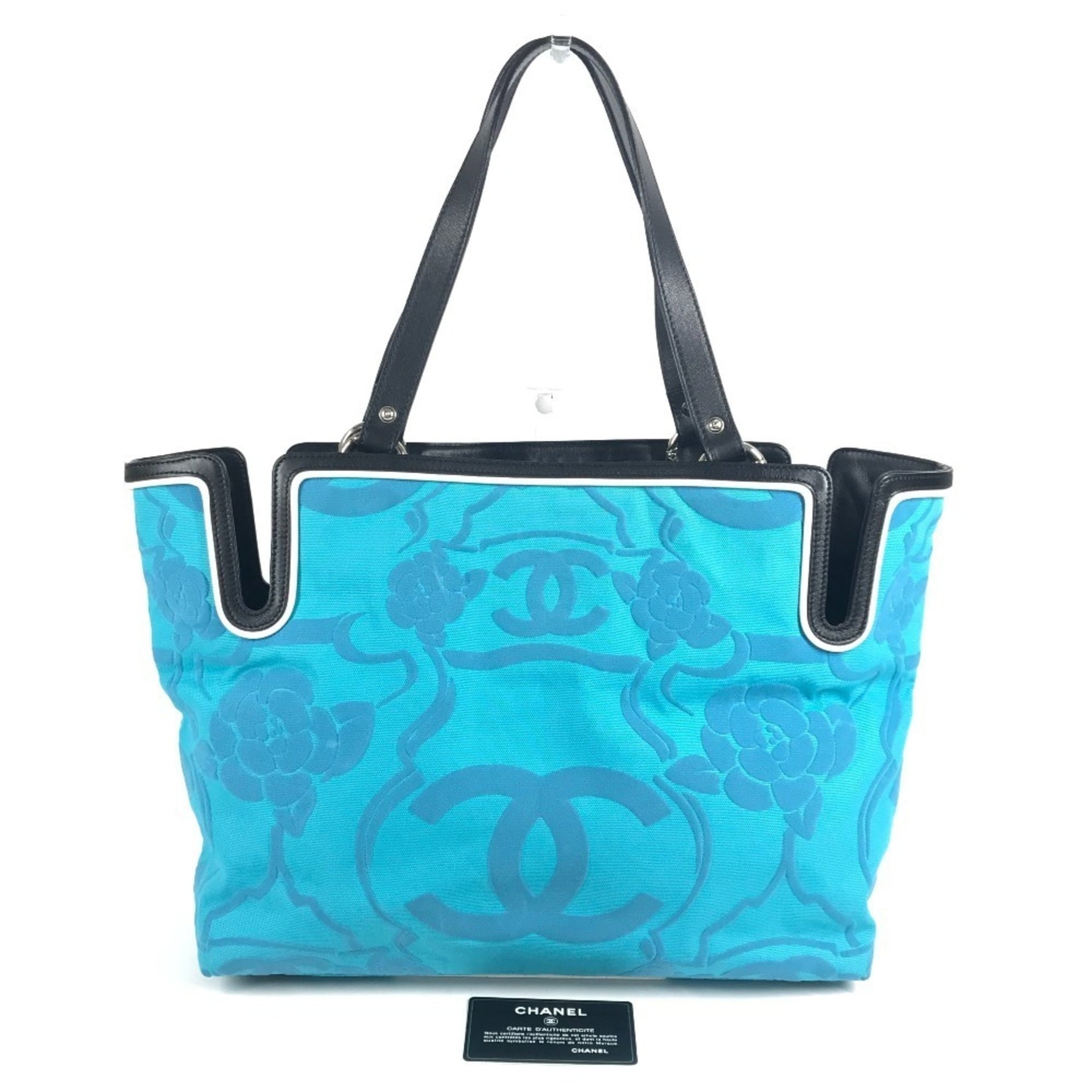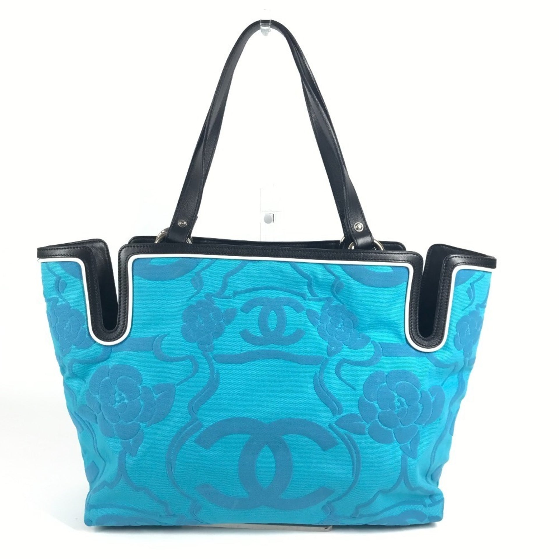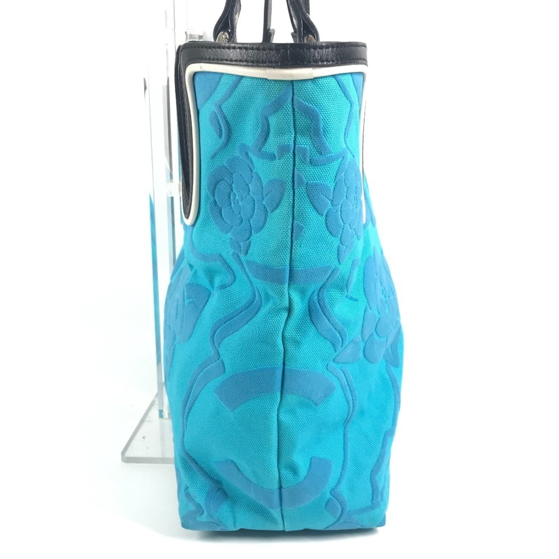 CHANEL Vintage Logo CC Coco Mark Camellia Tote Bag Shoulder Two-Tone Leather Canvas Women\'s Blue