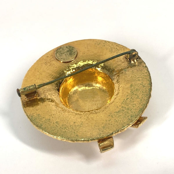 CHANEL Vintage Straw Hat, Hat Accessory, Brooch, Metal, Women\'s, Gold