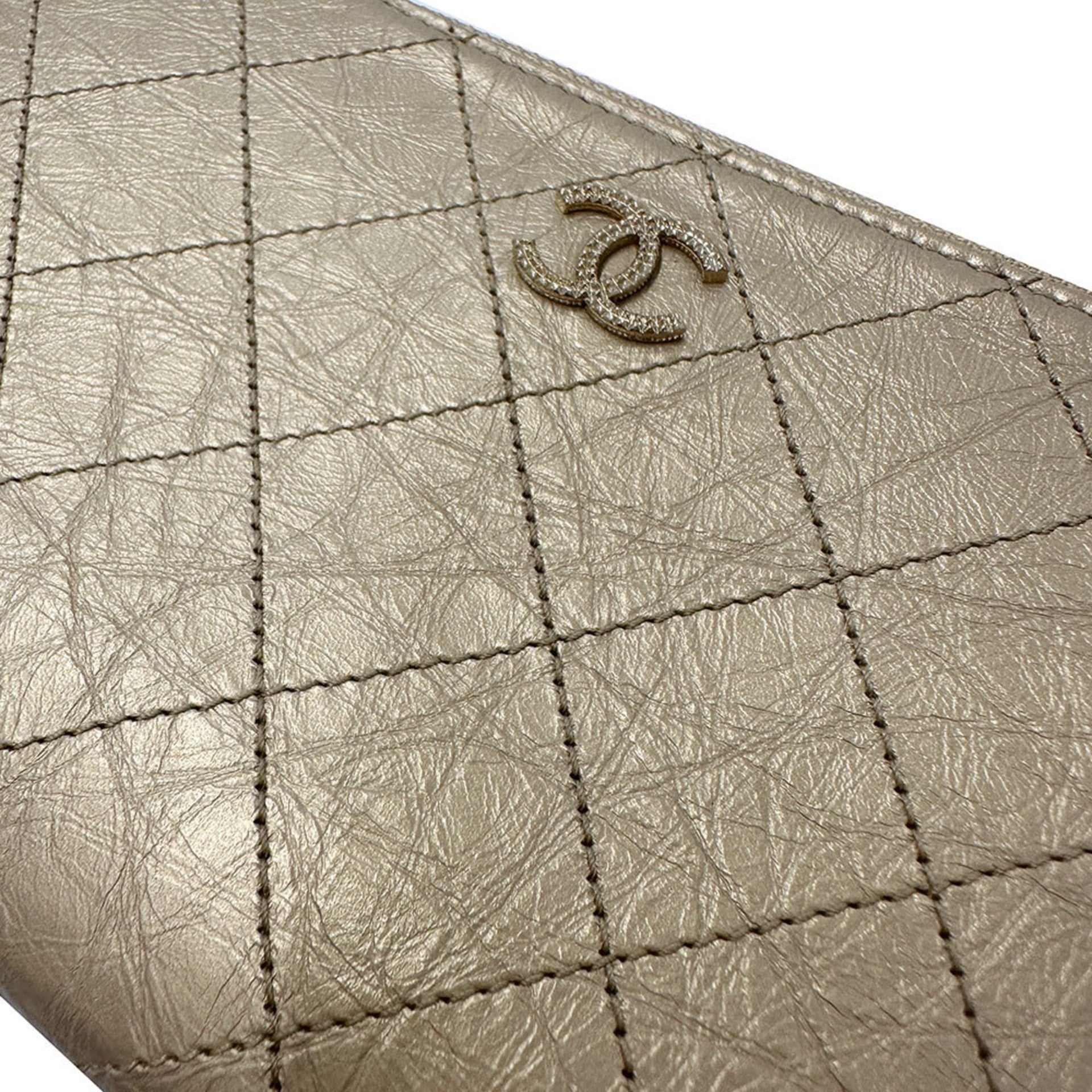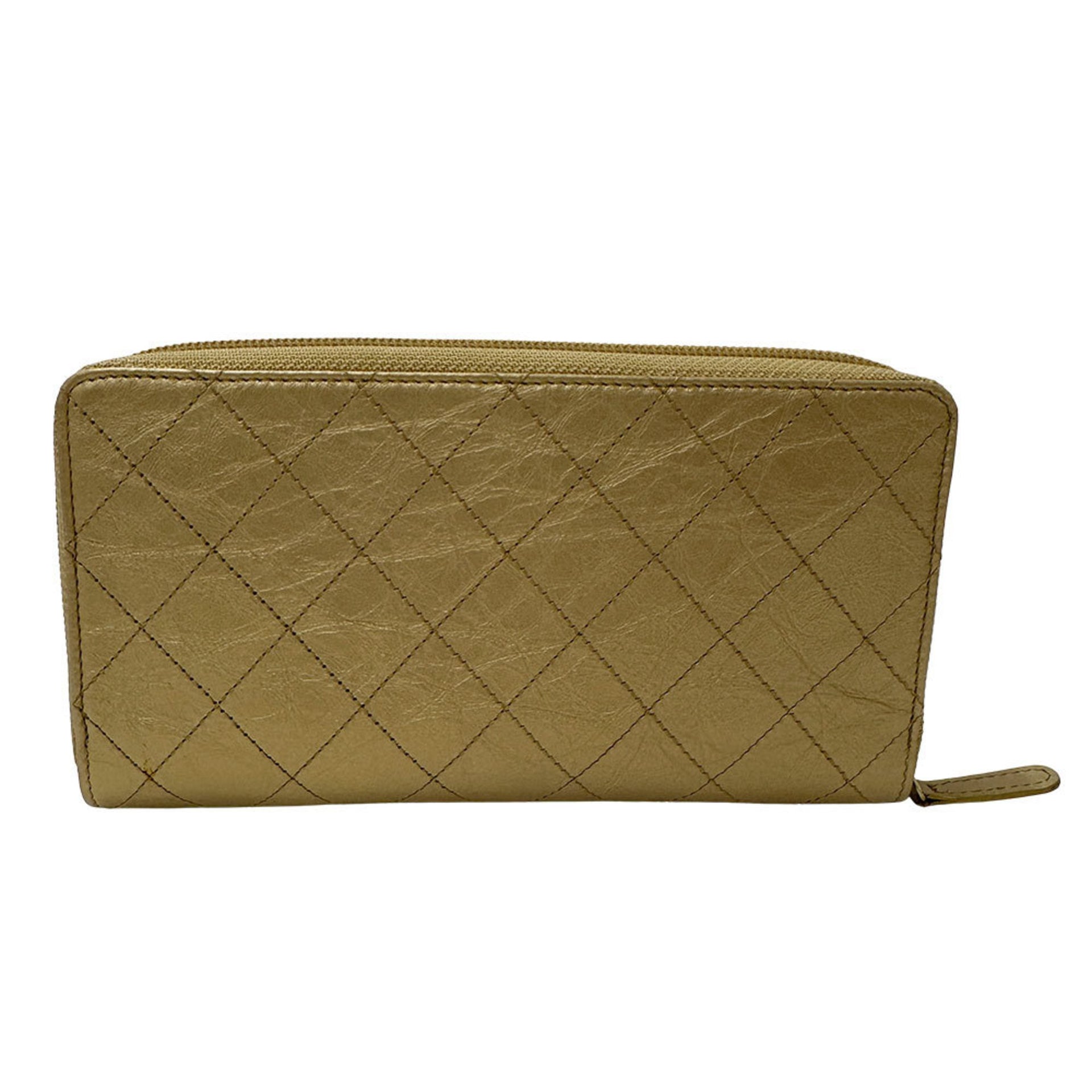 CHANEL Wallet Coco Mark Women\'s Long Leather Matelasse Gold Gorgeous