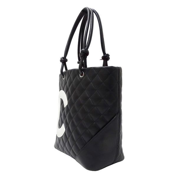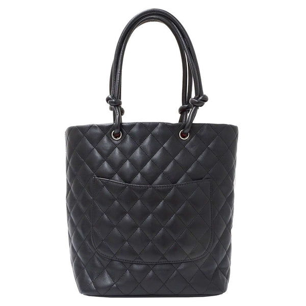 CHANEL Women\'s Cambon Medium Tote Bag in Black Lambskin with Quilted Coco Mark