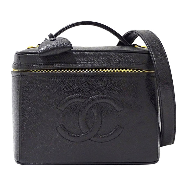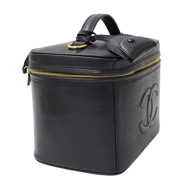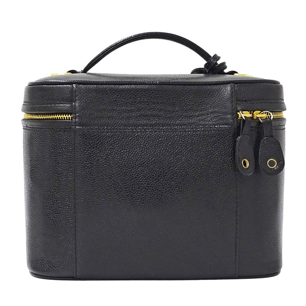 CHANEL Women\'s Vanity Bag, Handbag/Shoulder 2-Way, Caviar Leather, Black with Gold Hardware