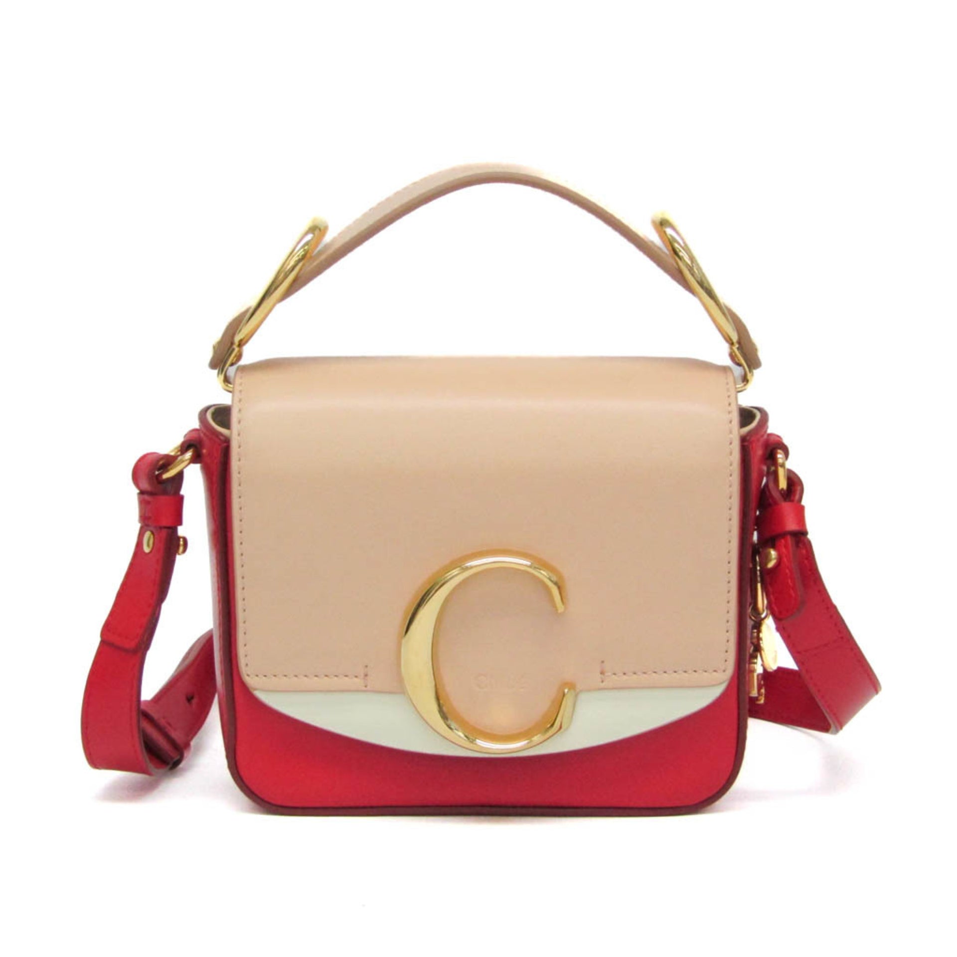 Chloé Chloe C Mini Women\'s Leather Handbag,Shoulder Bag Light Beige,Red Color