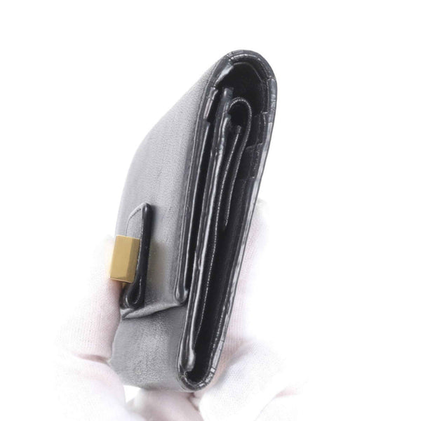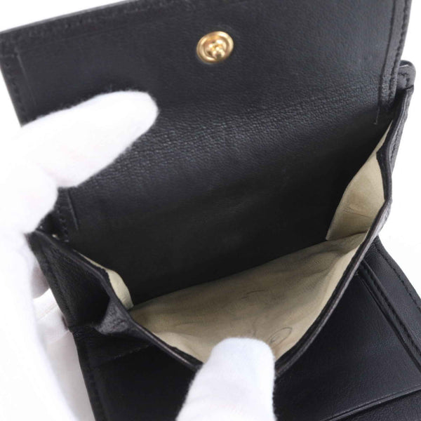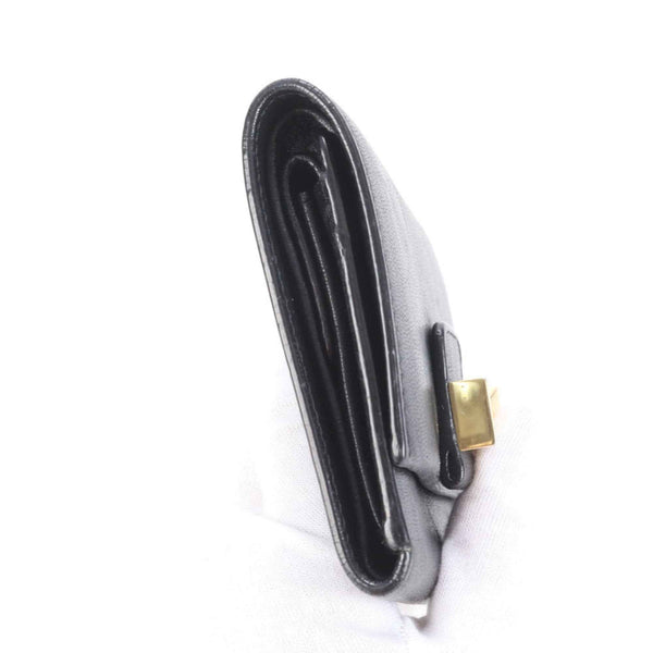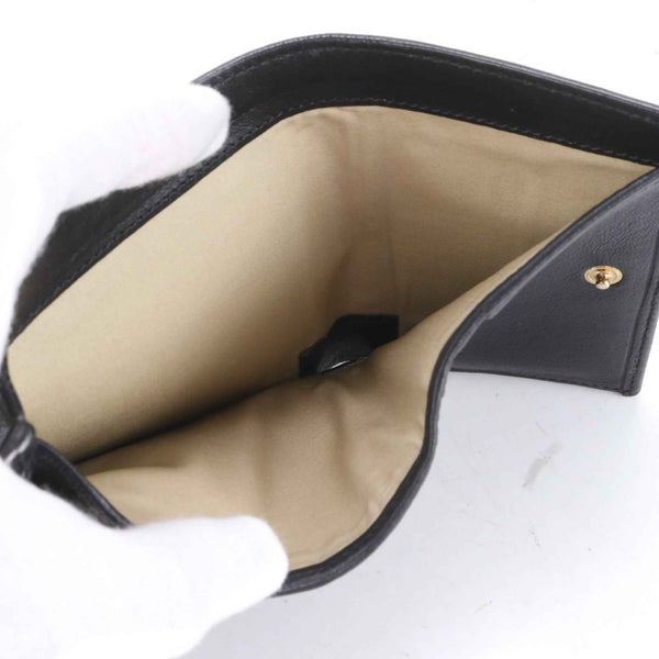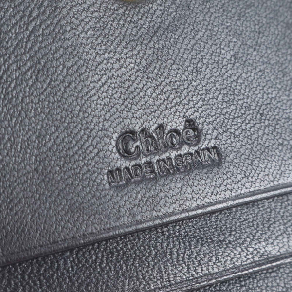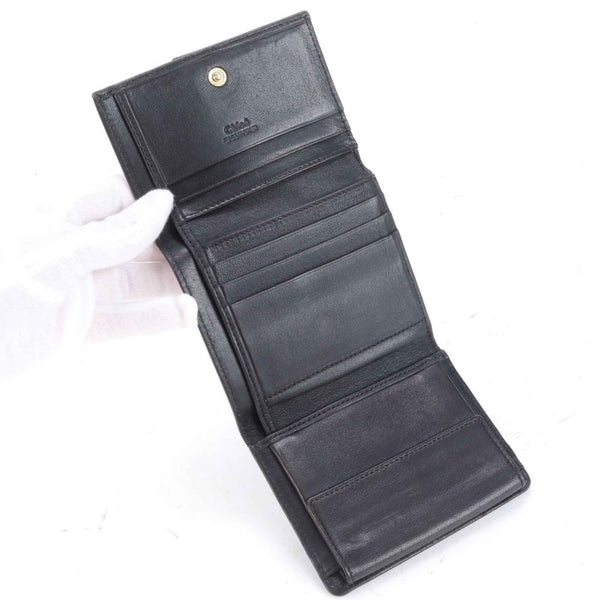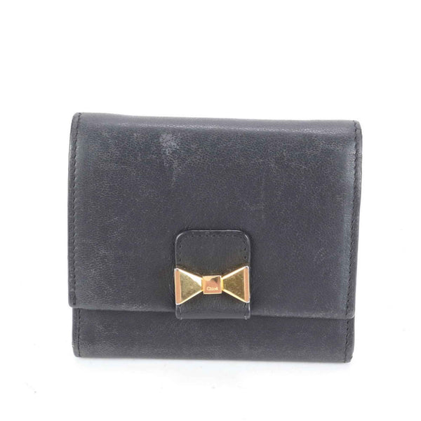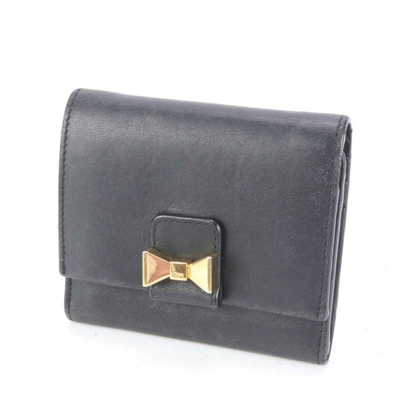 Chloé Chloe Ribbon Gold Hardware Leather Tri-fold Compact Wallet Genuine Black Women's