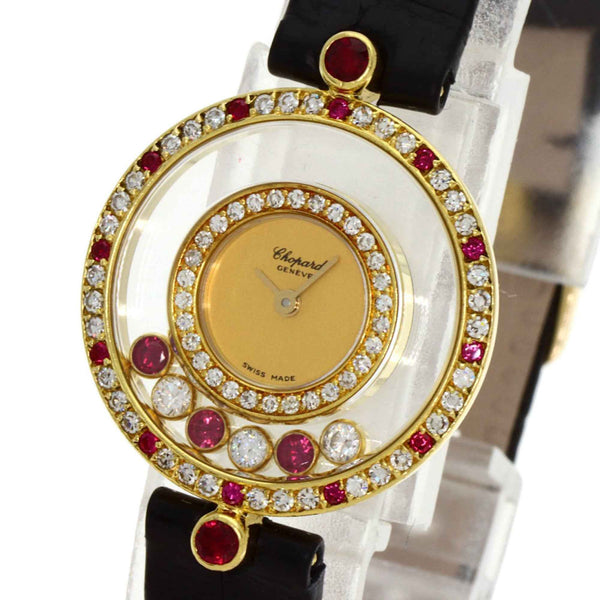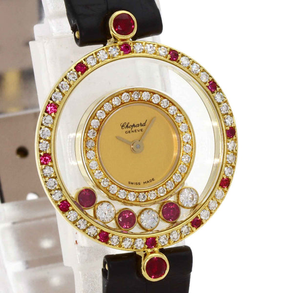 Chopard 20/4191-21 Happy Diamonds Ruby Watch in 18K Yellow Gold and Leather, Women\'s