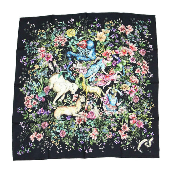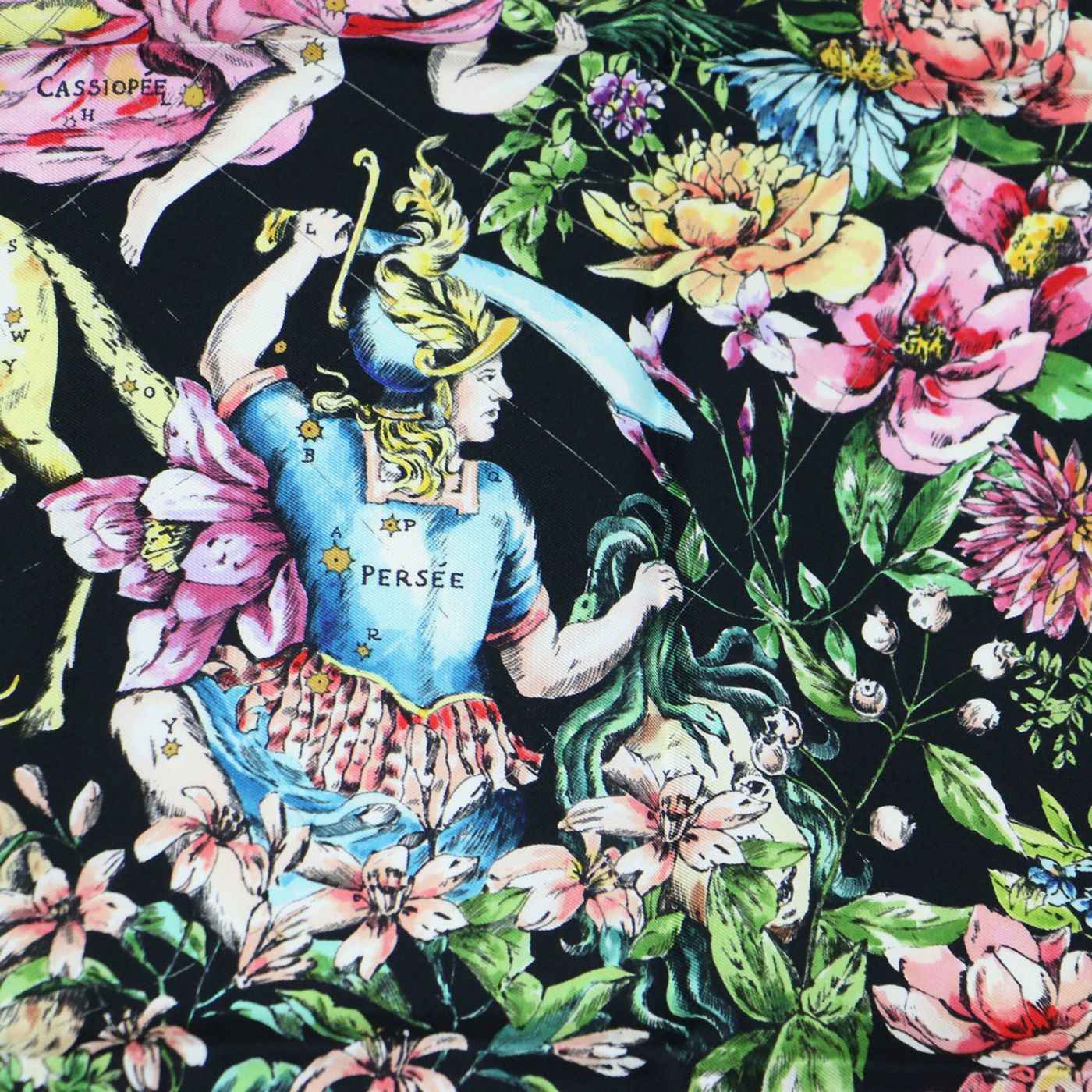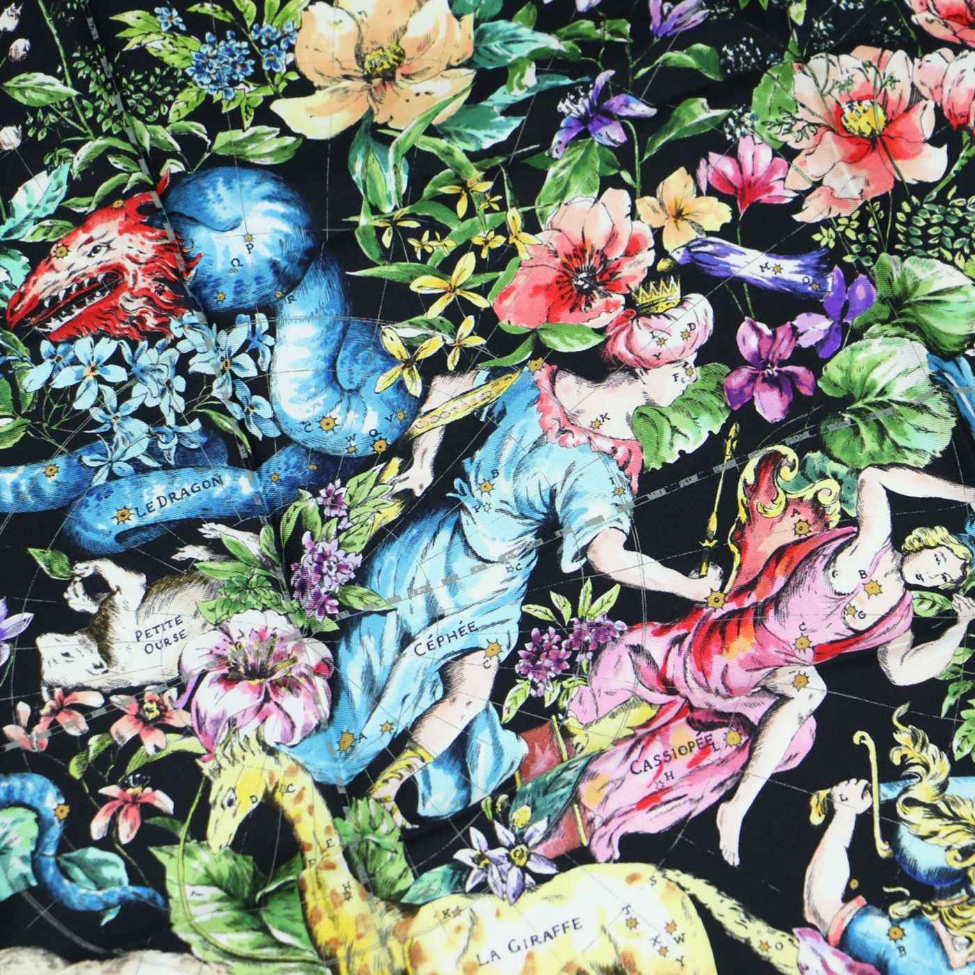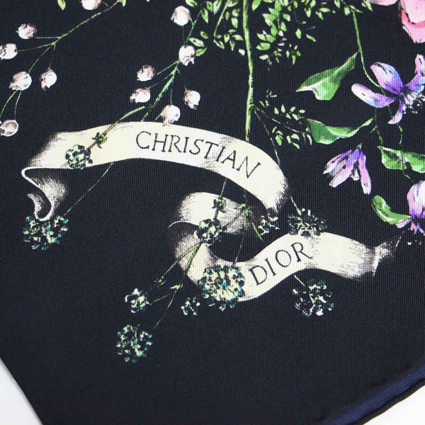 Christian Dior 22 D-Constellation Print Silk Scarf/Muffler in Black with Constellation and Floral