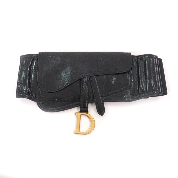 Christian Dior B0049CNOH Women\'s Leather Belt Waist Bag with Saddle Pouch, Black, Gold Hardware