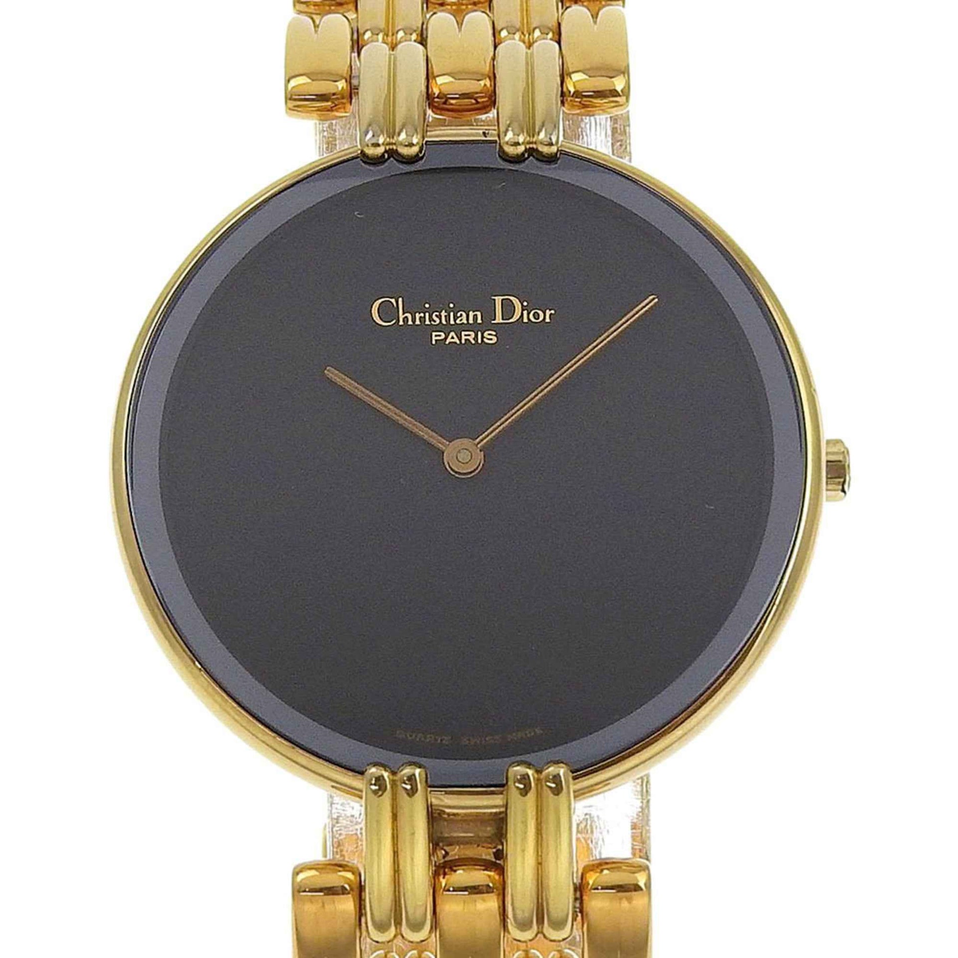 Christian Dior Bakira Watch D47-154-4, Gold-Plated Stainless Steel with Gold Quartz Movement, Analog Display, Black Dial, Women\'s