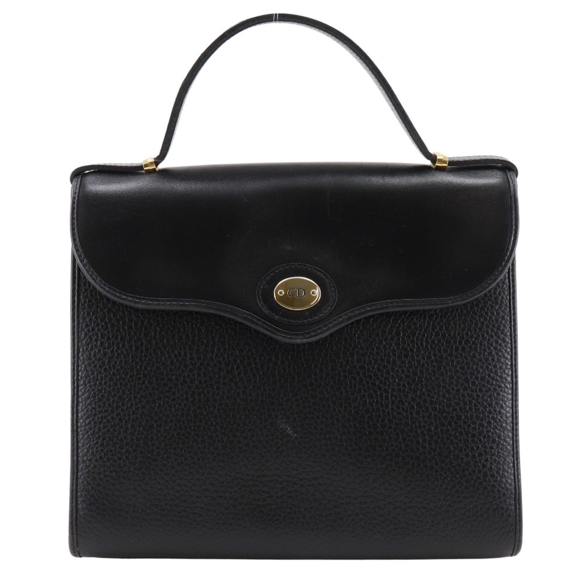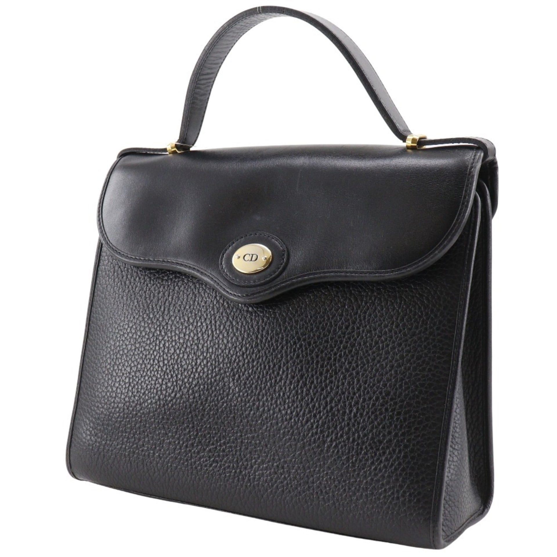 Christian Dior CD logo handbag, vintage, one-handle, calfskin, made in France, black, snap closure, logo, women\'s.