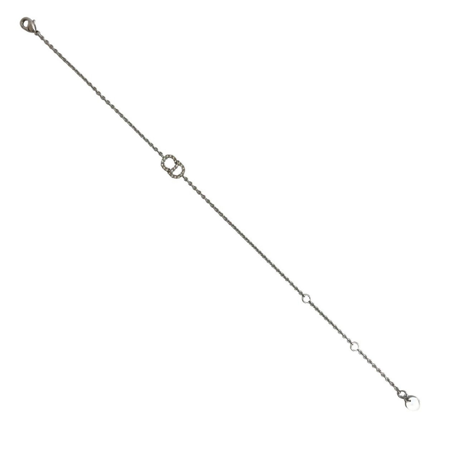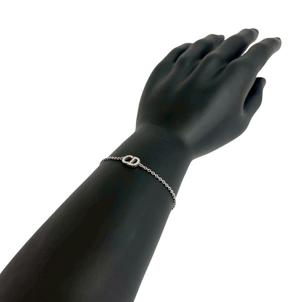 Christian Dior CD Logo Rhinestone and Alloy Chain Bracelet/Bangle Accessory, Silver, 63558