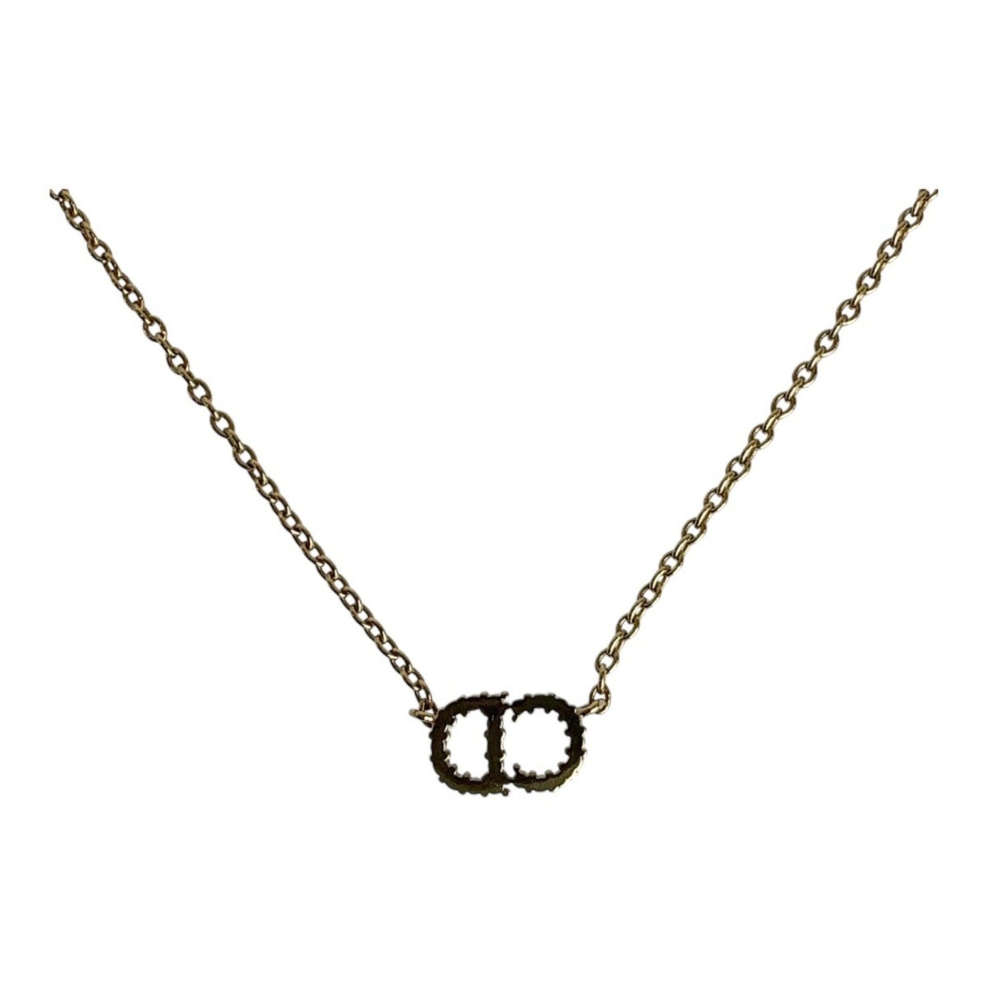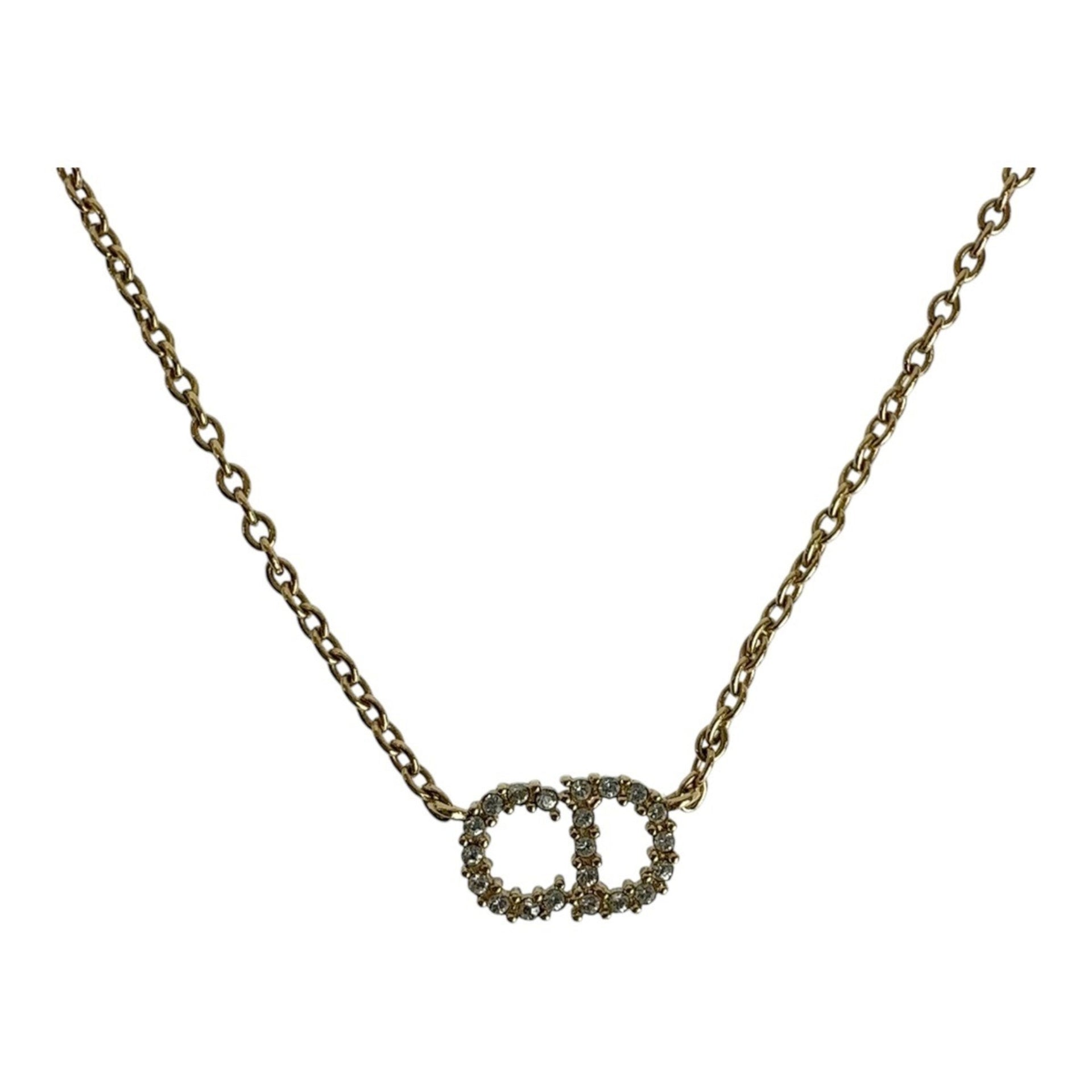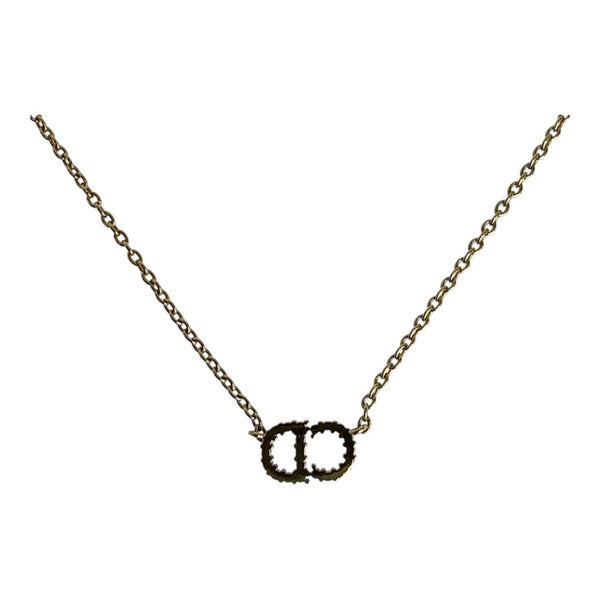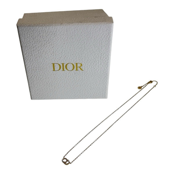 Christian Dior Clair D Lune Gold Metal Rhinestone Necklace CD Logo for Women