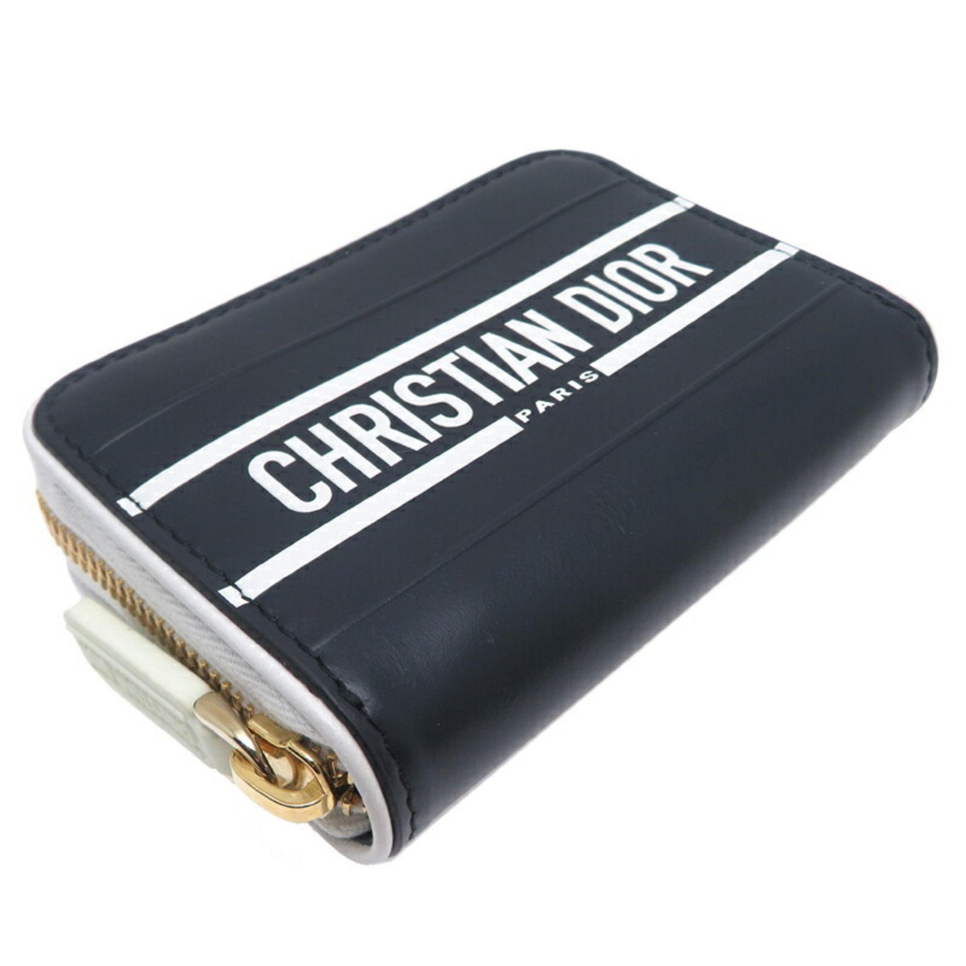 Christian Dior Compact Wallet Women\'s Coin Case Leather Black