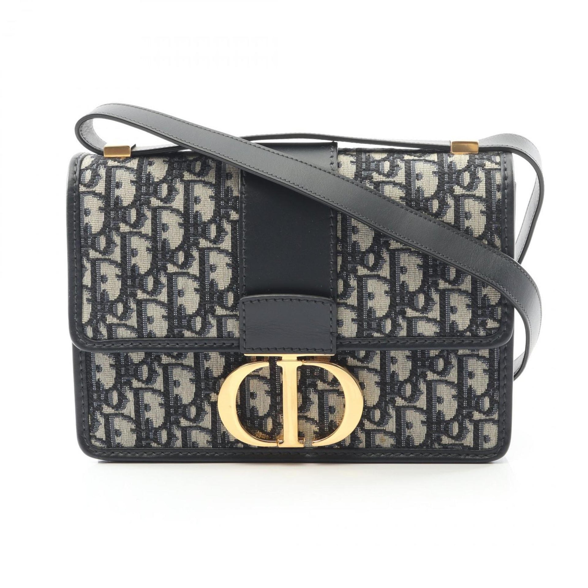 Christian Dior Dior 30 MONTAIGNE Oblique Jacquard Shoulder Bag, Canvas and Leather, Women\'s, Navy Beige, M9203UTZQ
