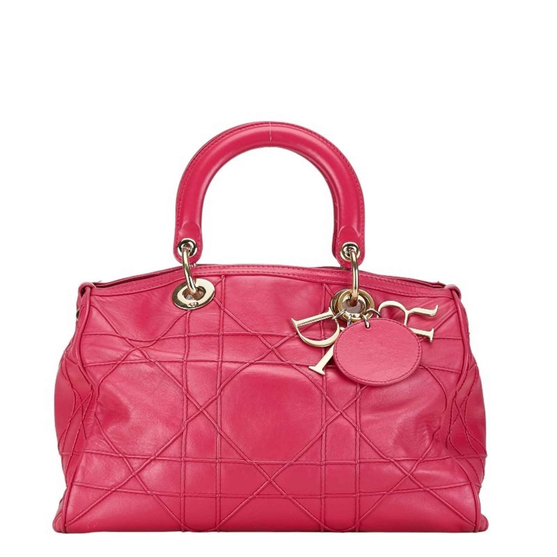 Christian Dior Dior Granville Cannage Handbag Shoulder Bag Pink Leather Women\'s