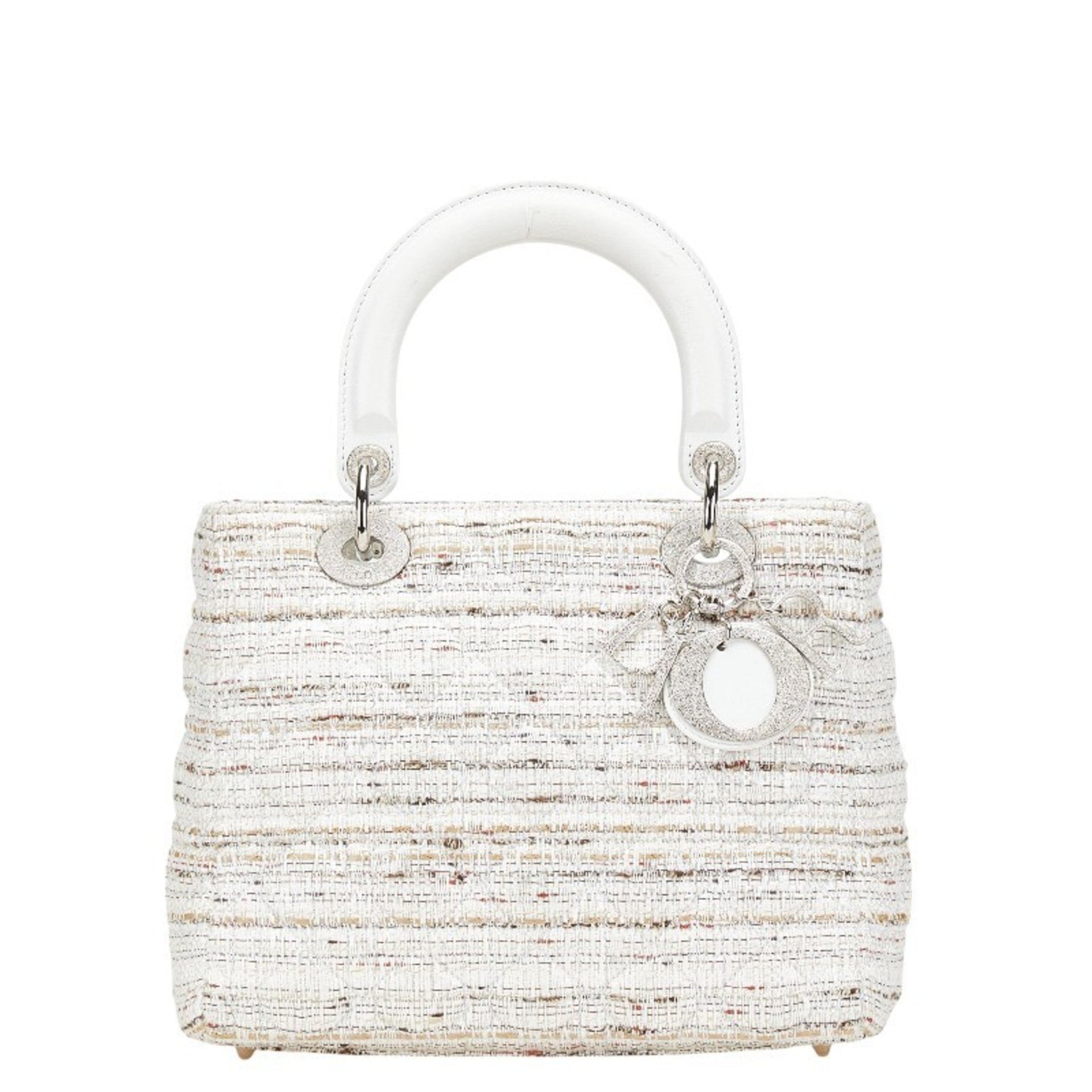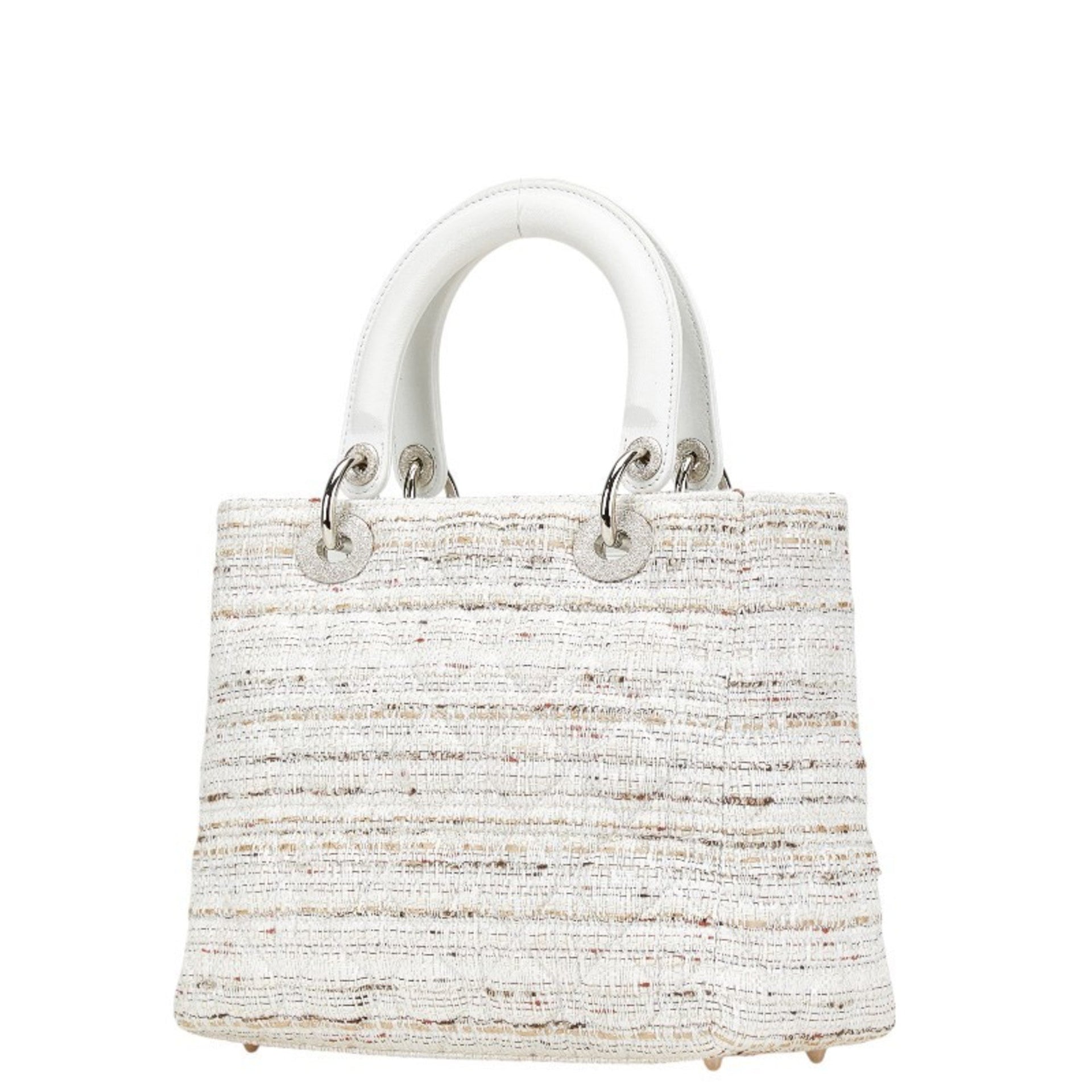 Christian Dior Dior Lady Canage Tweed Handbag in White and Multicolor Canvas Leather for Women