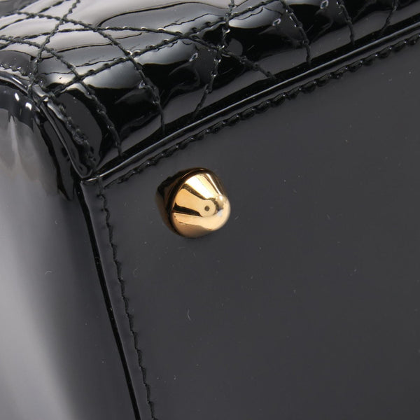 Christian Dior Dior Lady Large Cannage Handbag Patent Leather Women\'s Black