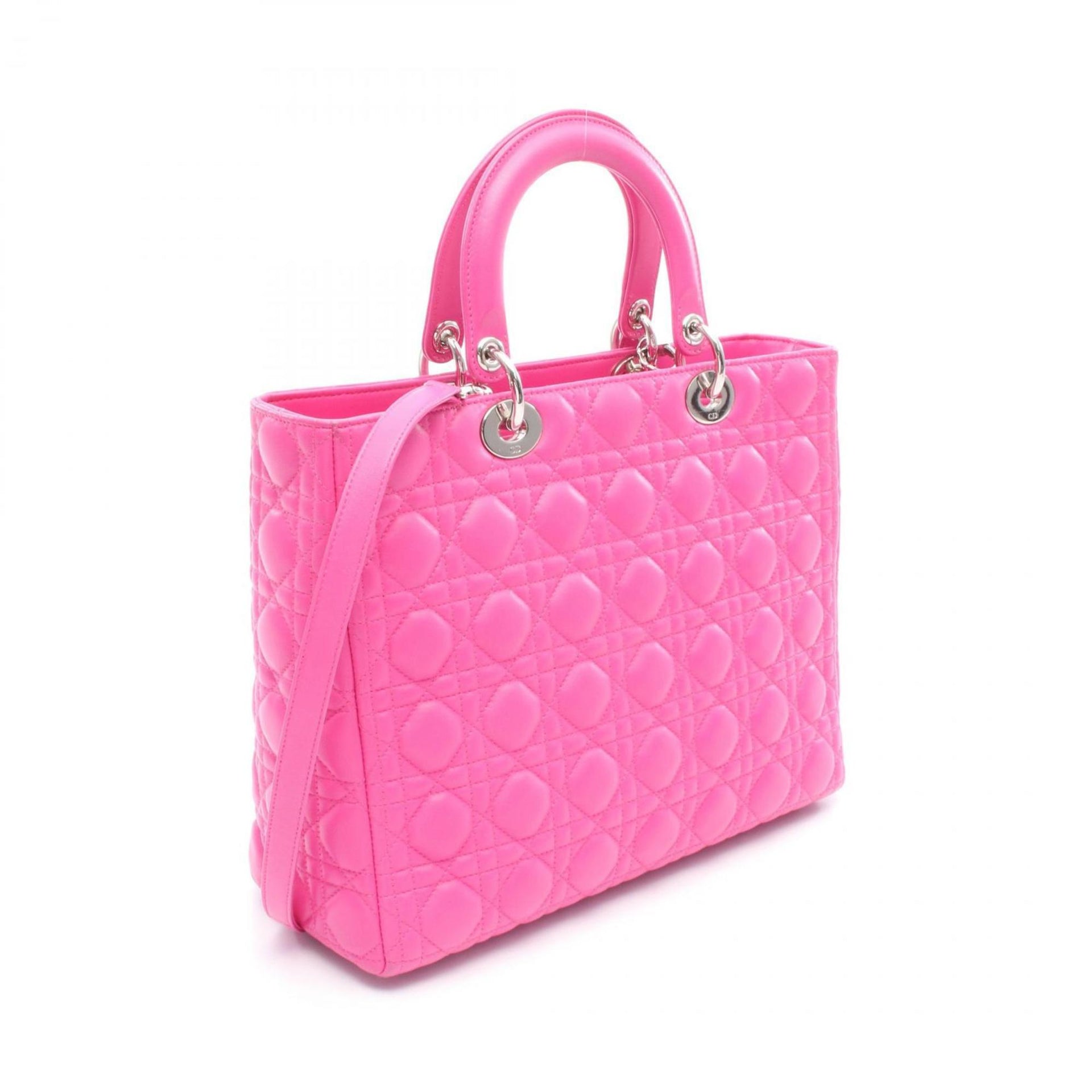 Christian Dior Dior Lady Large Handbag Leather Women\'s Pink