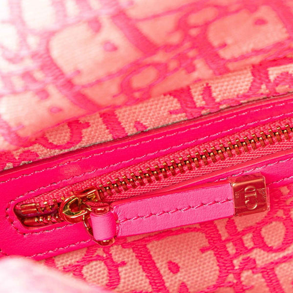 Christian Dior Dior Lady Wicker Handbag/Shoulder Bag, 2-Way, Beige, Pink, Rattan, Canvas, Leather, Women\'s,