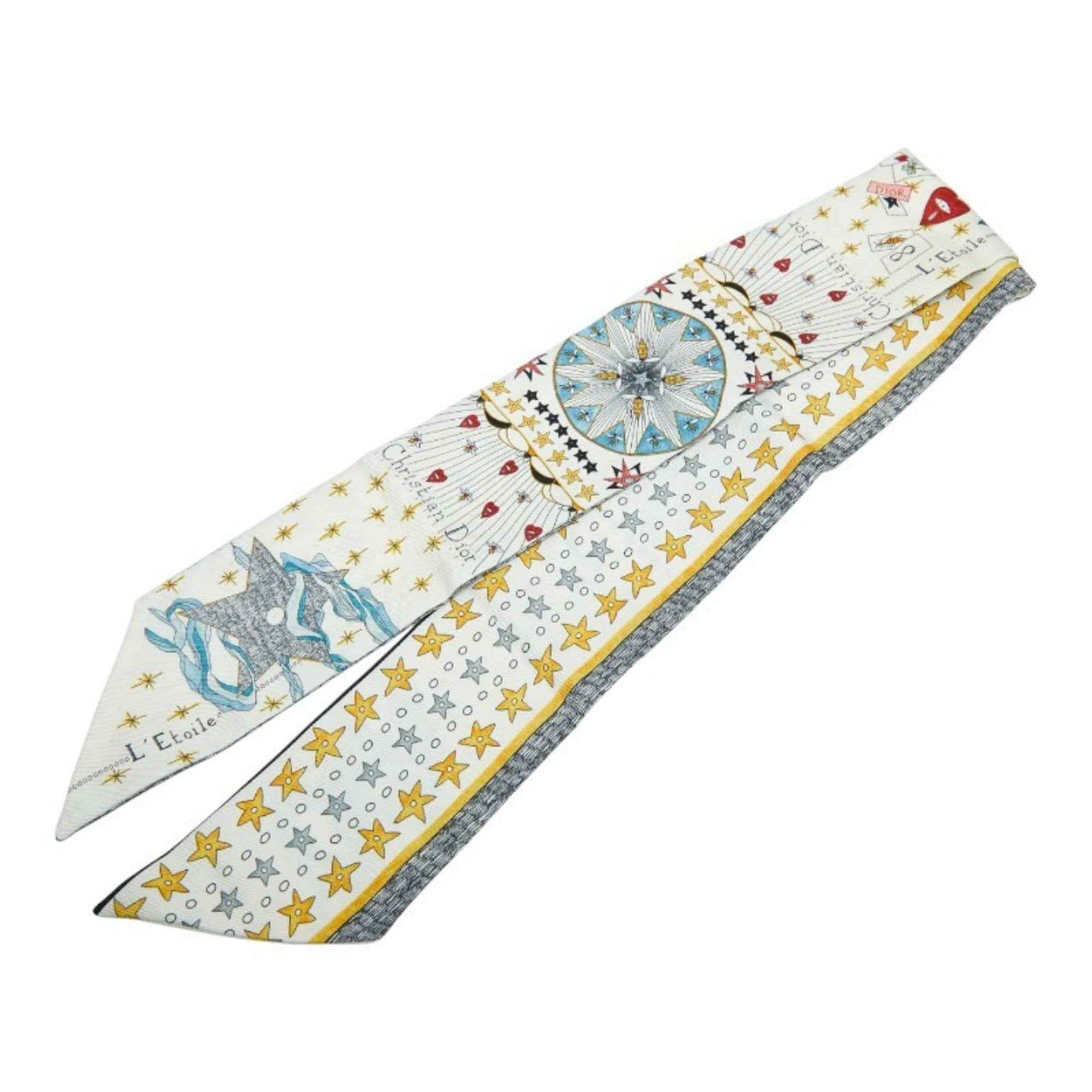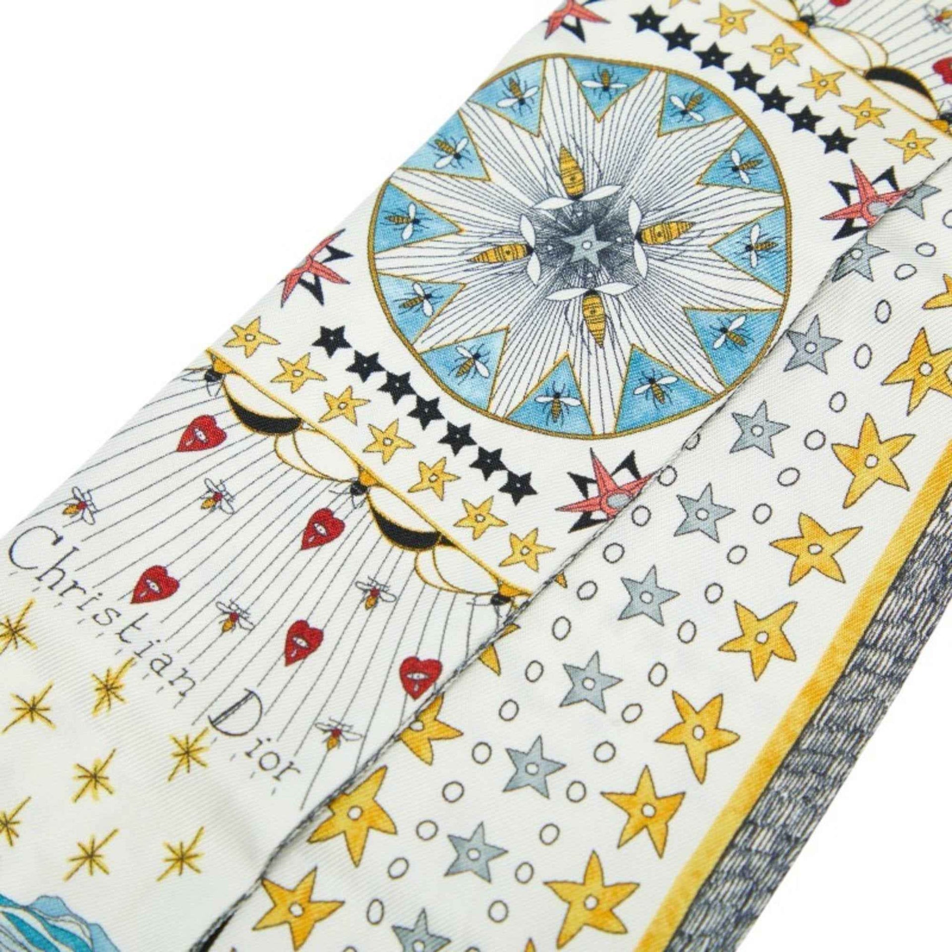 Christian Dior Dior Mitzah Tarot Scarf, White and Multicolor Silk, Women\'s,