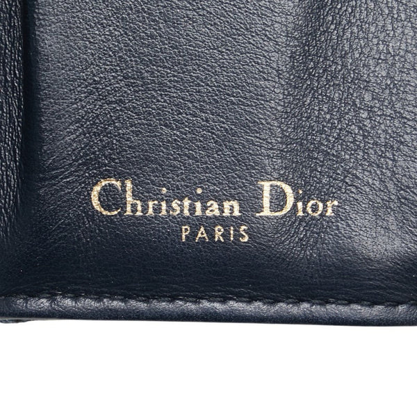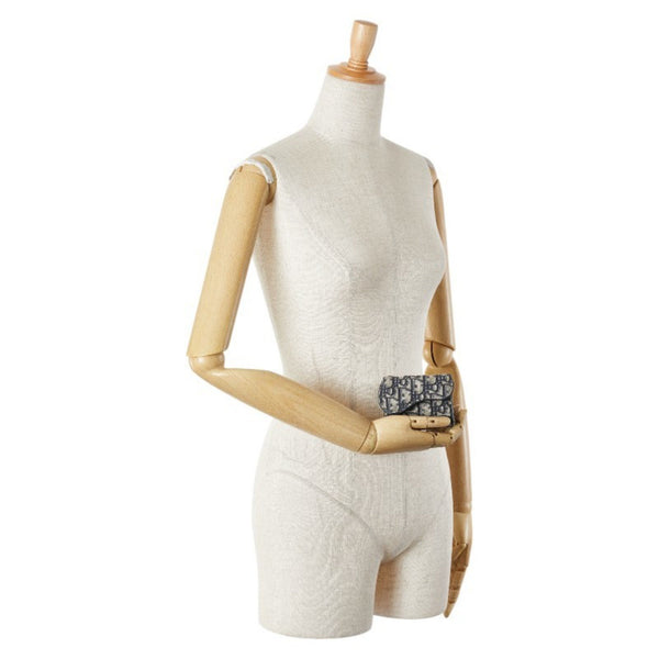 Christian Dior Dior Oblique Saddle Tri-fold Wallet Navy Beige Canvas Leather Women's