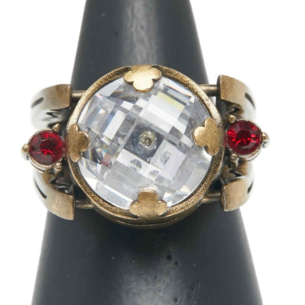 Christian Dior Dior Ring #M Gold with Red Plated Rhinestones for Women