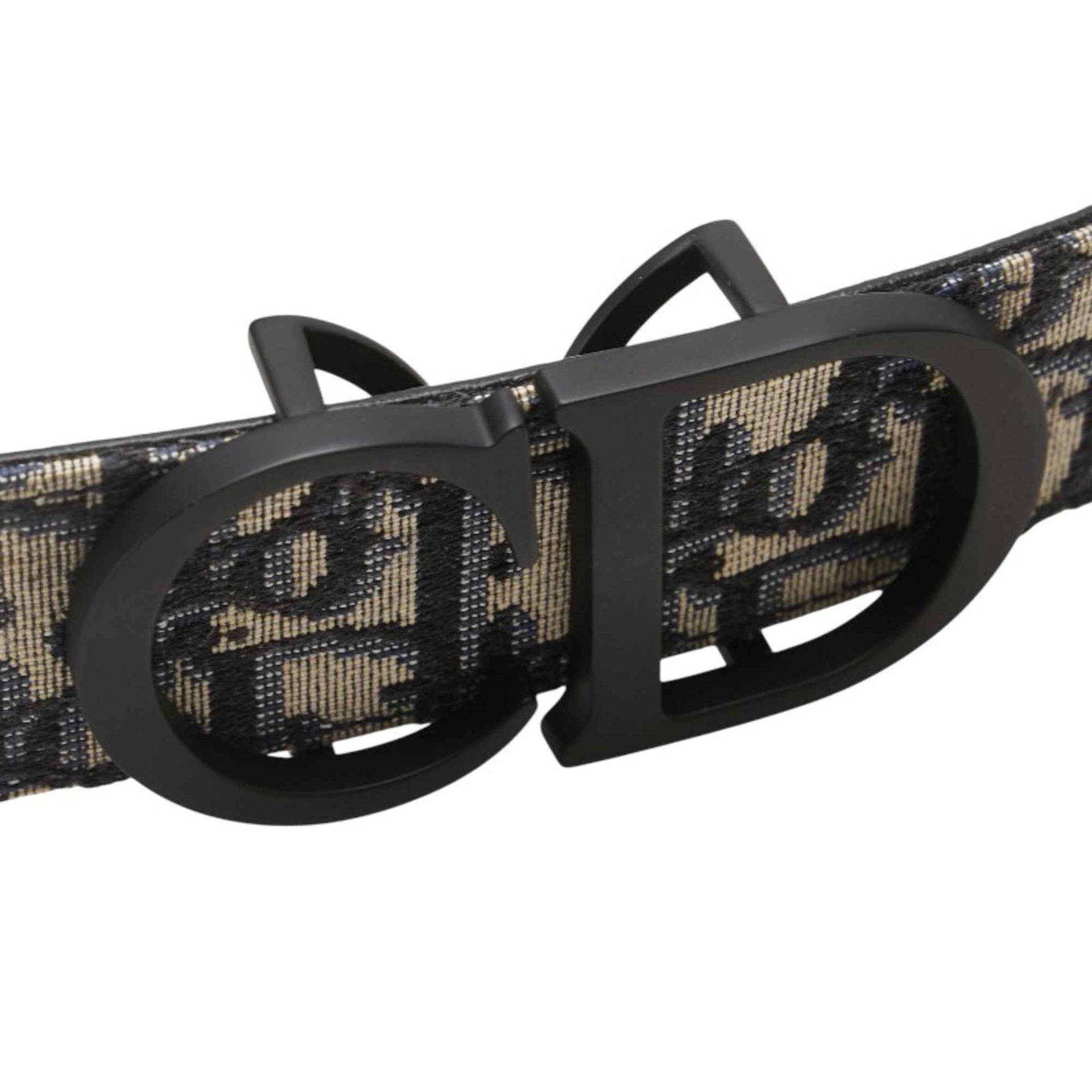 Christian Dior Dior Trotter Belt Navy Black Canvas Leather Women\'s
