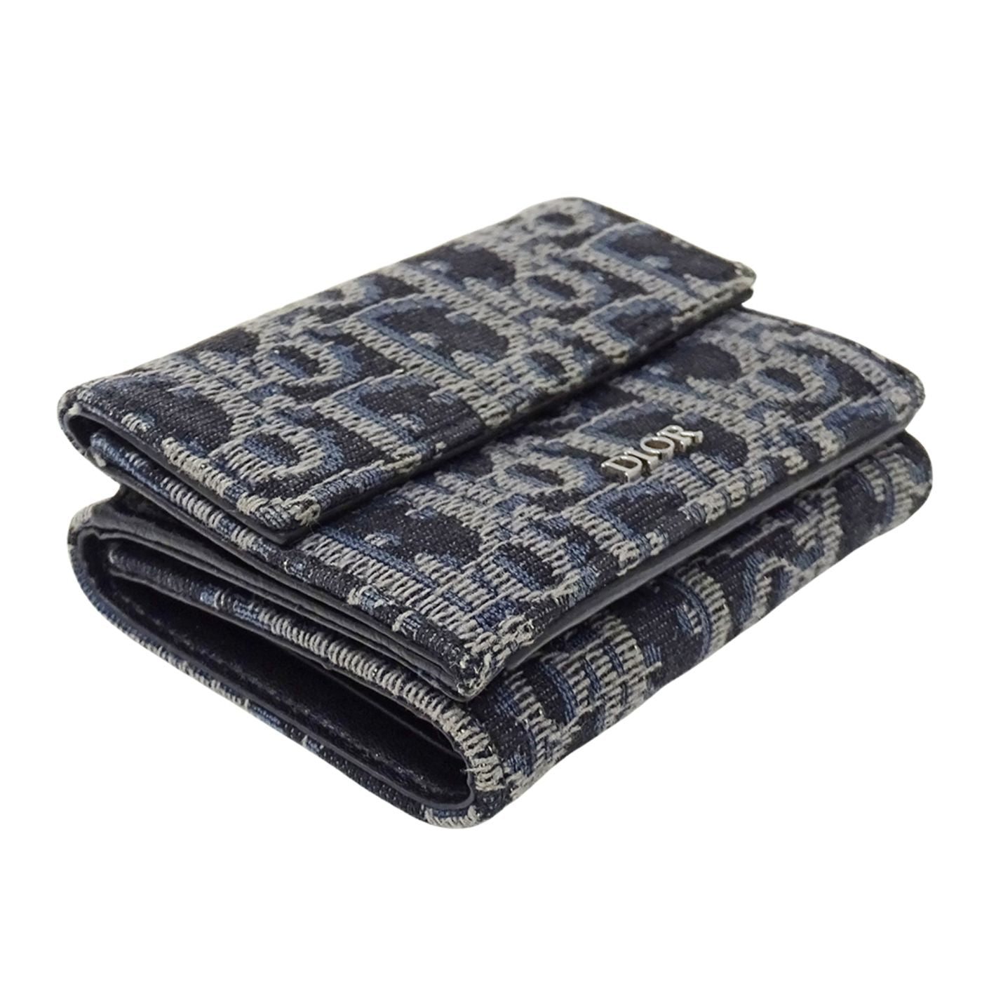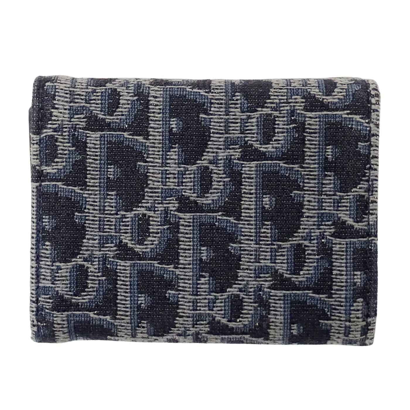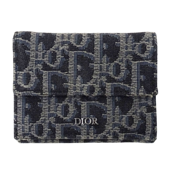 Christian Dior Dior women\'s wallet, brand name, trifold oblique jacquard, navy, mini wallet
