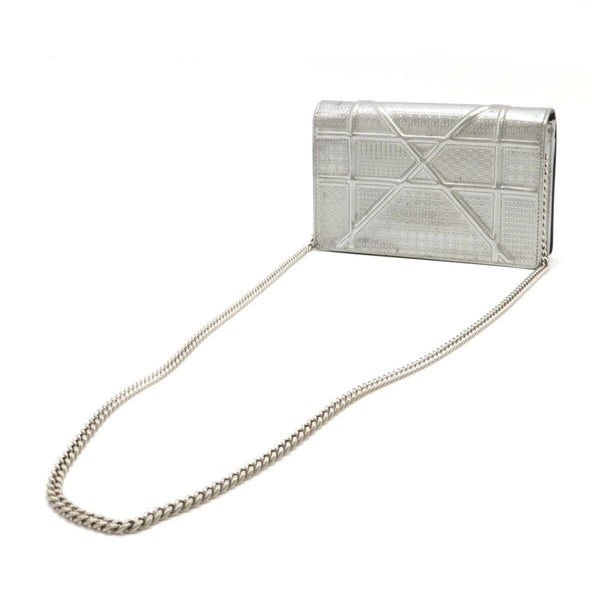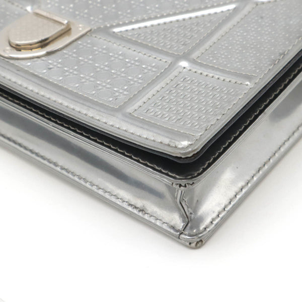Christian Dior Diorama Chain Wallet Pochette Clutch Bag Patent Leather Metallic Silver