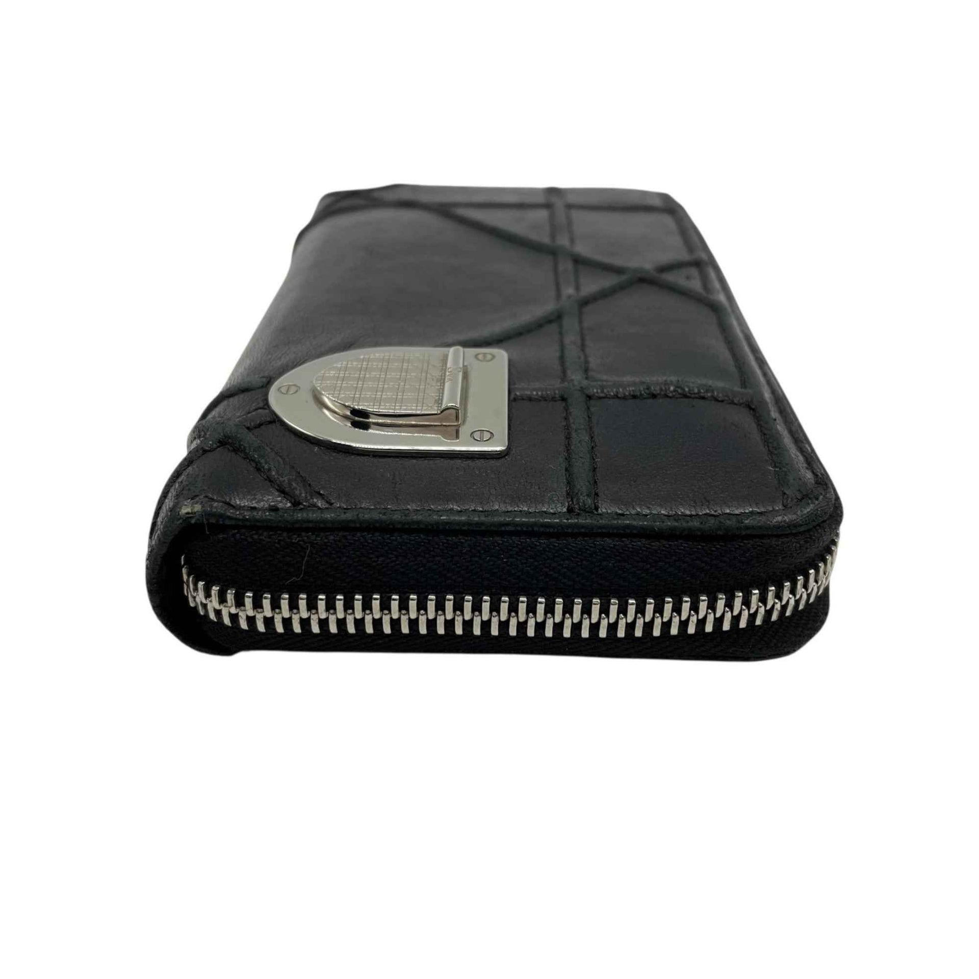 Christian Dior Diorama Long Wallet with Round Zipper, Black Quilted Leather, Silver Hardware, Men\'s and Women\'s, W3