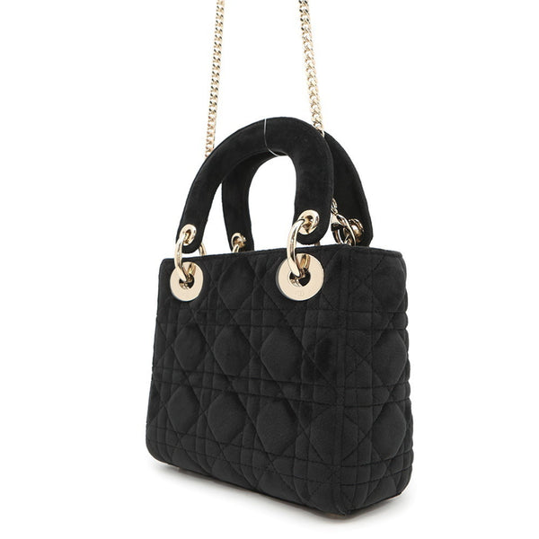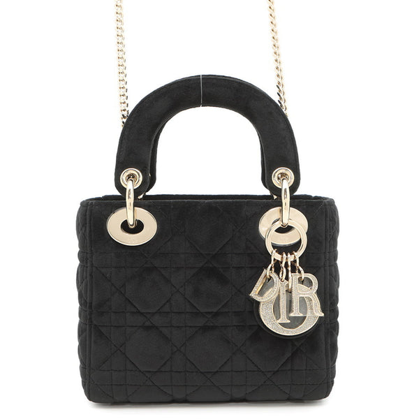 Christian Dior handbag Lady Cannage Mini Velour 2way shoulder bag Black
