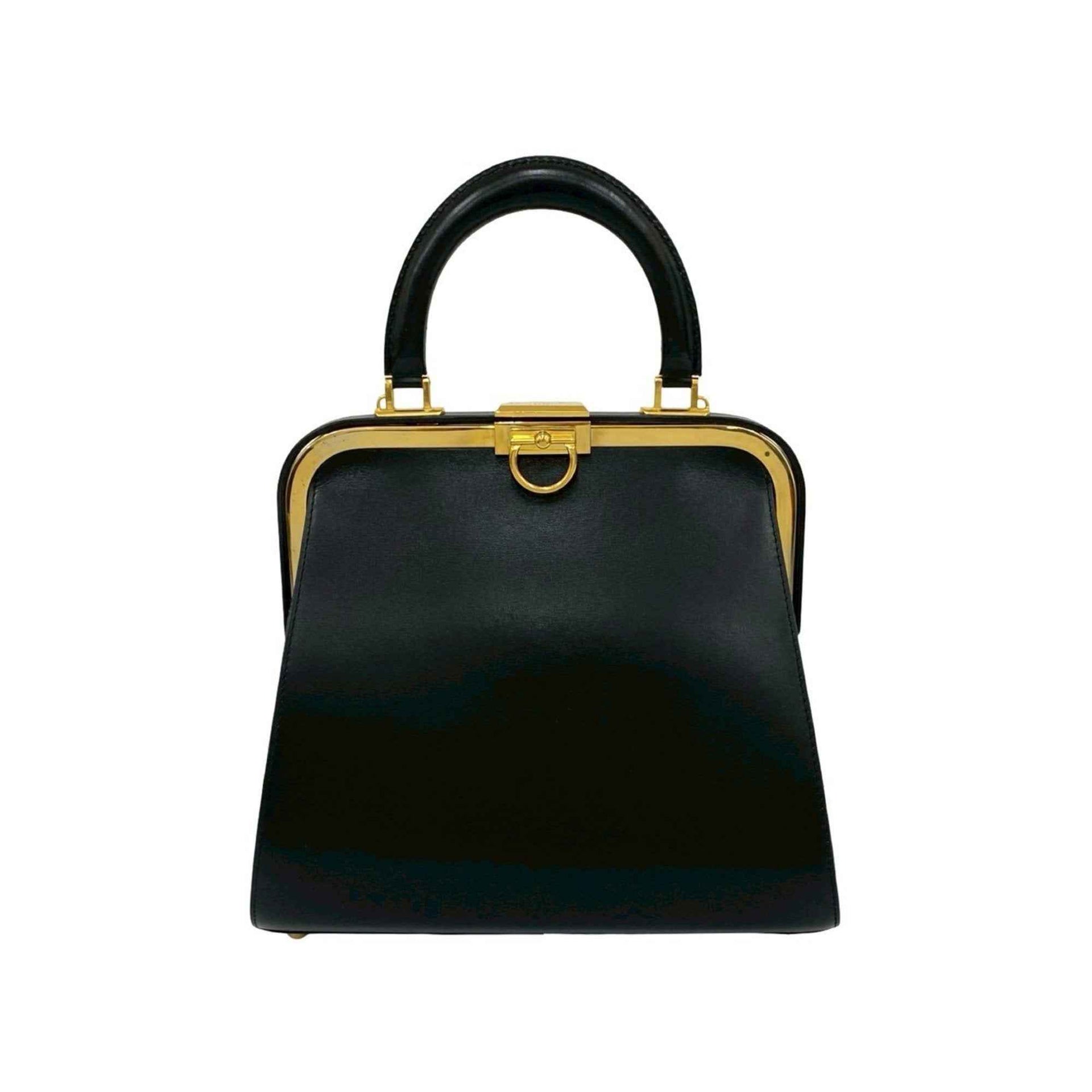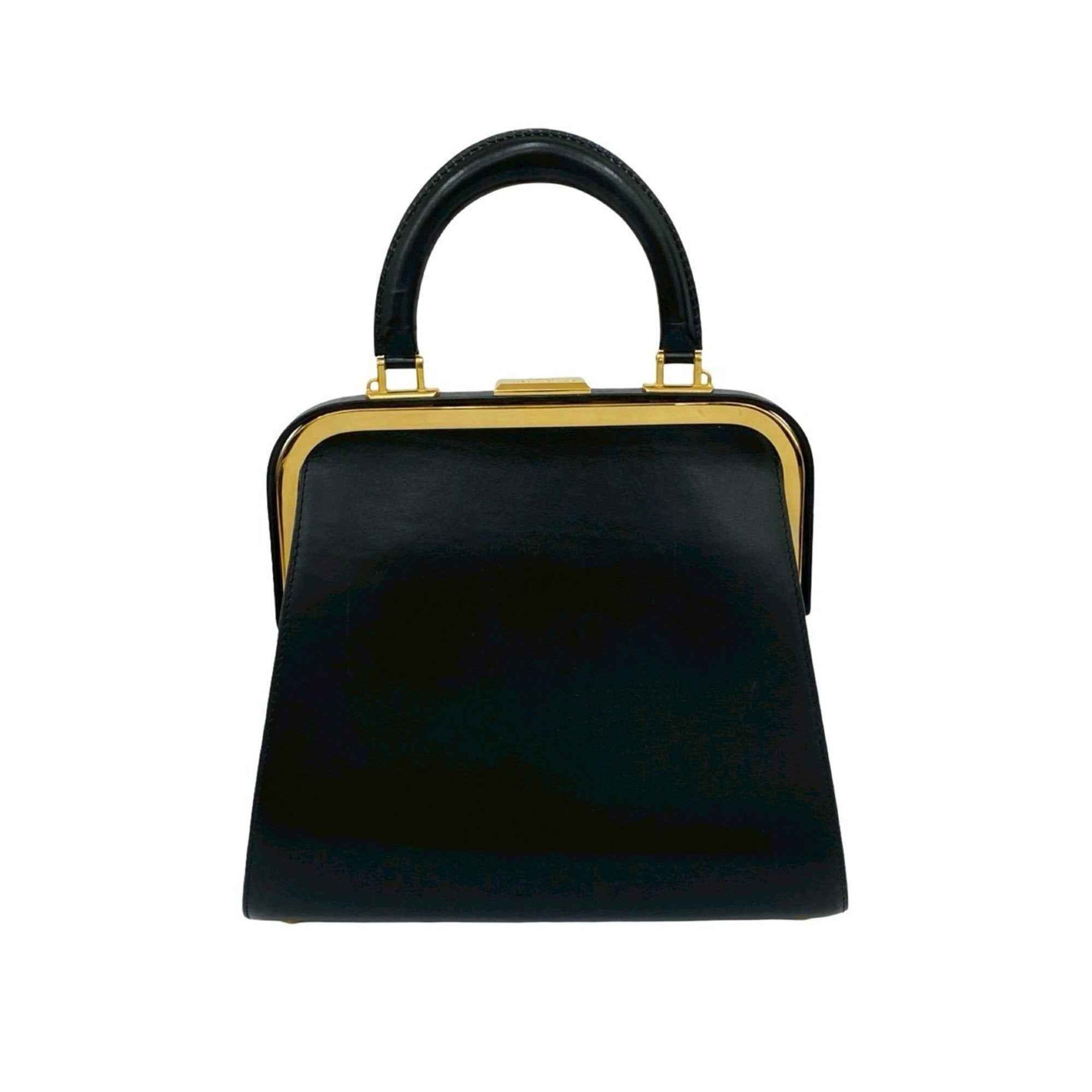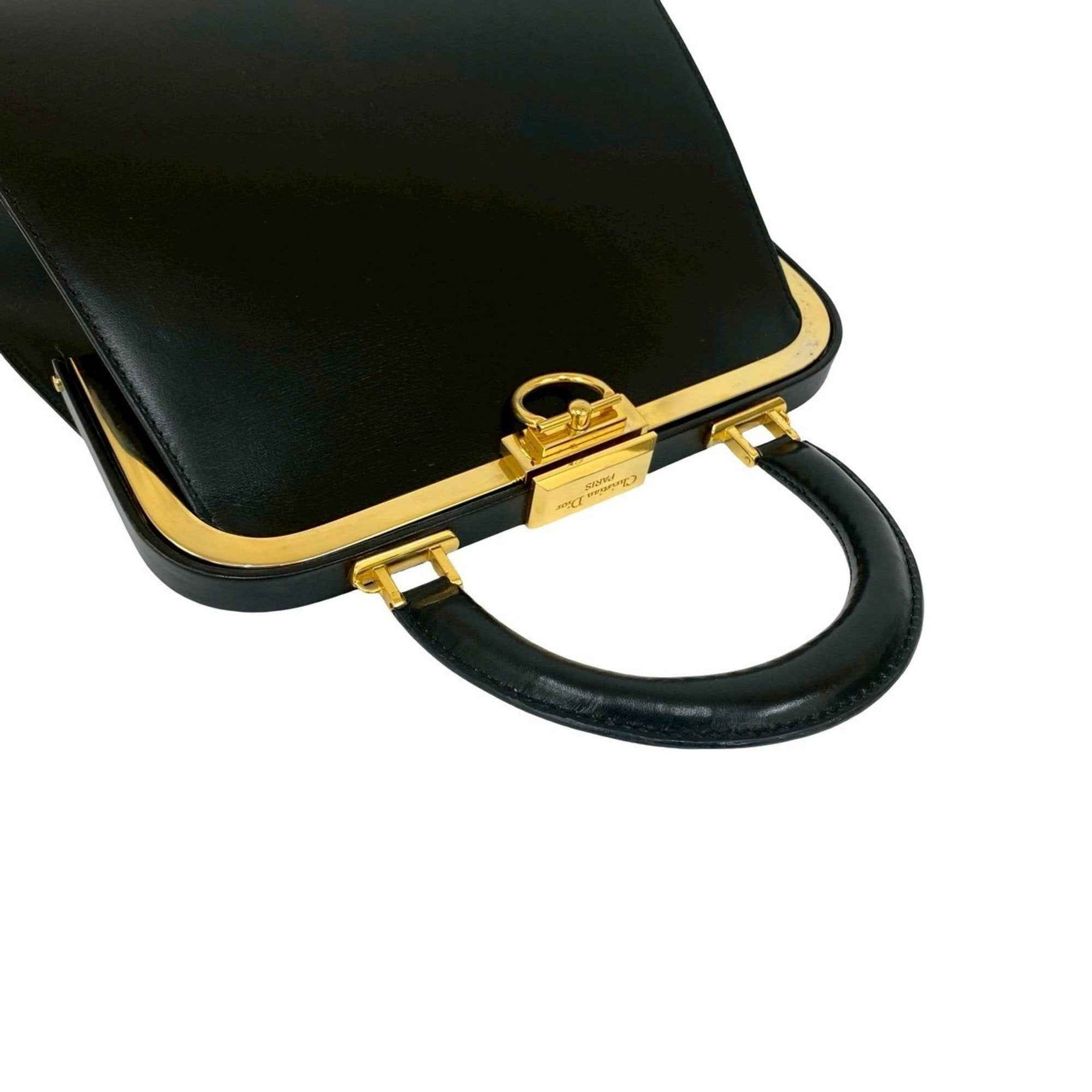 Christian Dior Logo Hardware Leather Turnlock Handbag Mini Tote Bag Black 02811