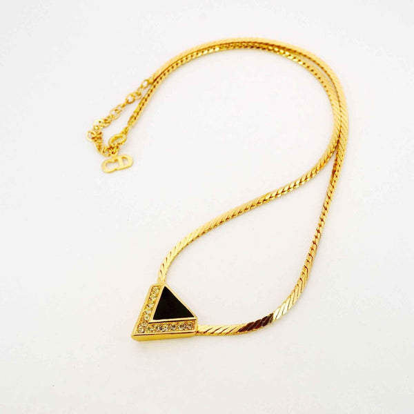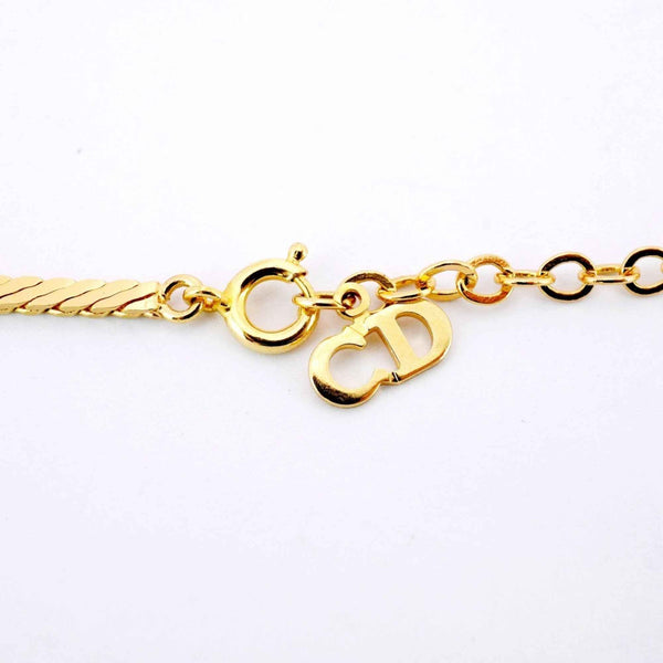 Christian Dior Necklace, GP Plated, Rhinestone, Gold, Black, Women\'s