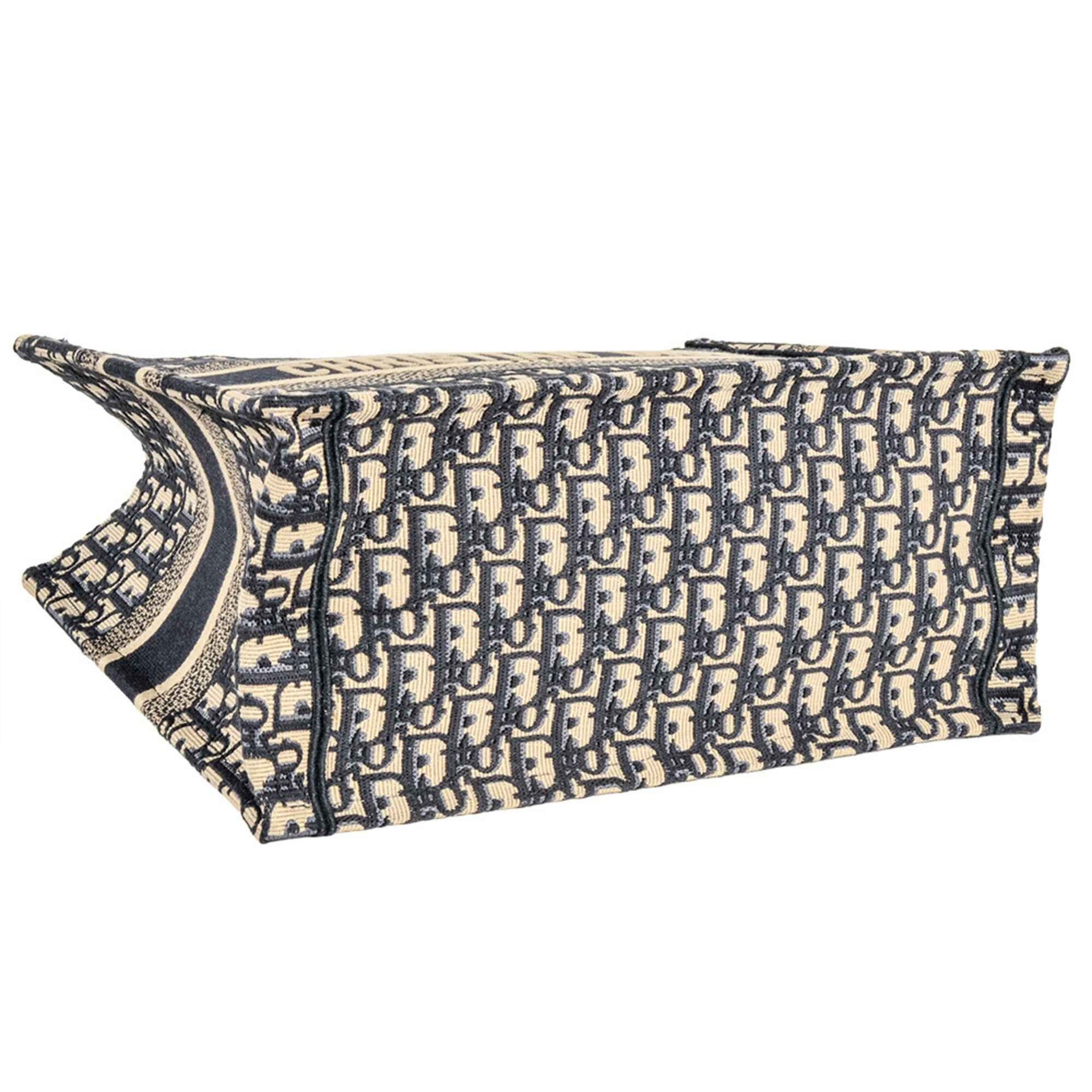Christian Dior Oblique Jacquard Book Tote Bag, Canvas, 50-MA, Navy, Medium