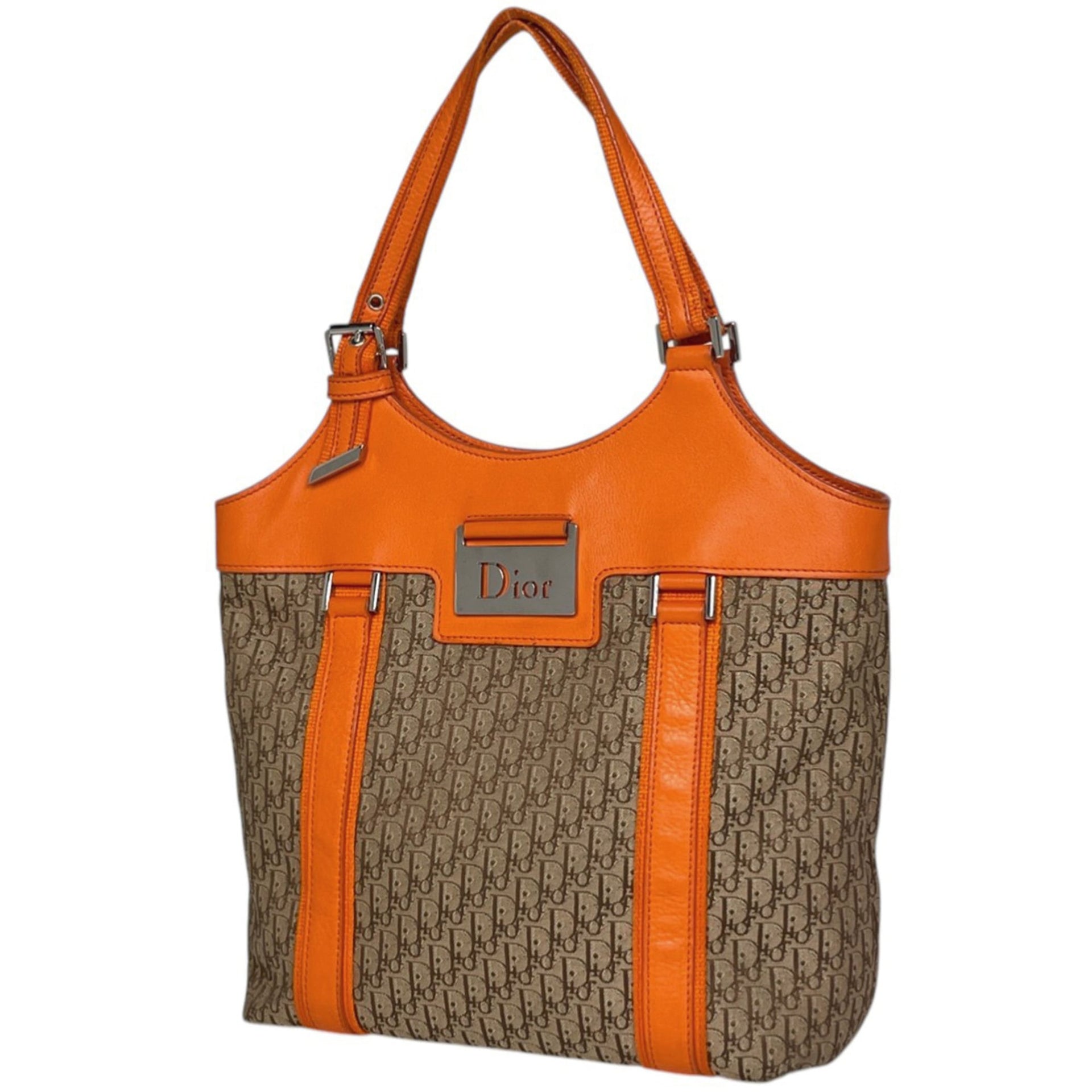 Christian Dior Street Chic Handbag, Trotter Pattern, Canvas, Orange Brown, Women\'s