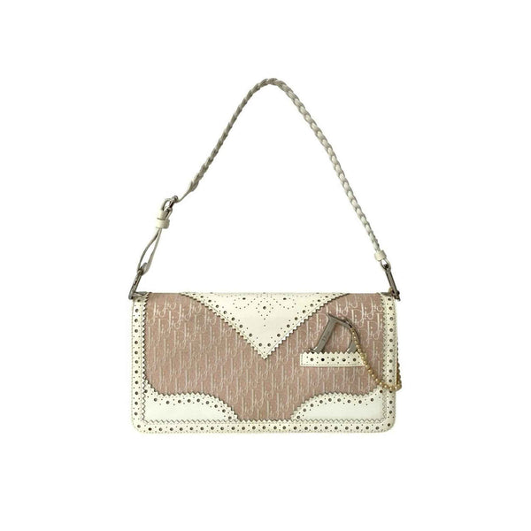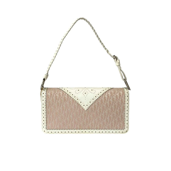 Christian Dior Trotter Pattern Canvas and Perforated Leather Semi-Shoulder Bag, Pink, 27163
