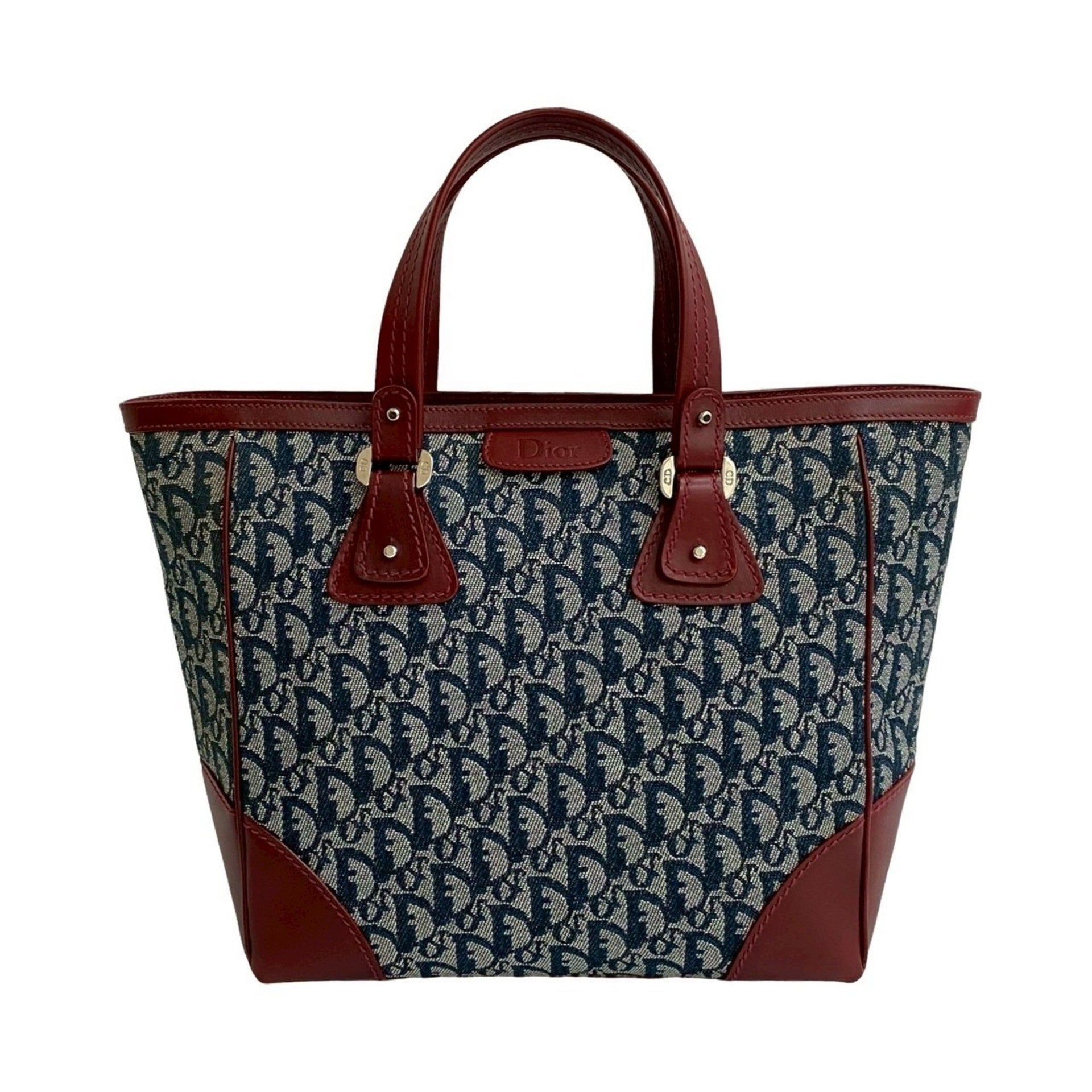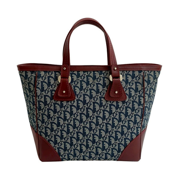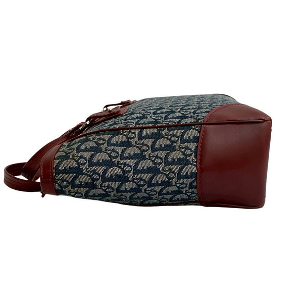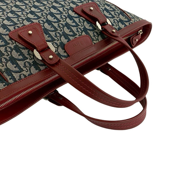 Christian Dior Trotter Pattern Canvas Leather Handbag Tote Bag Navy/Bordeaux 77053
