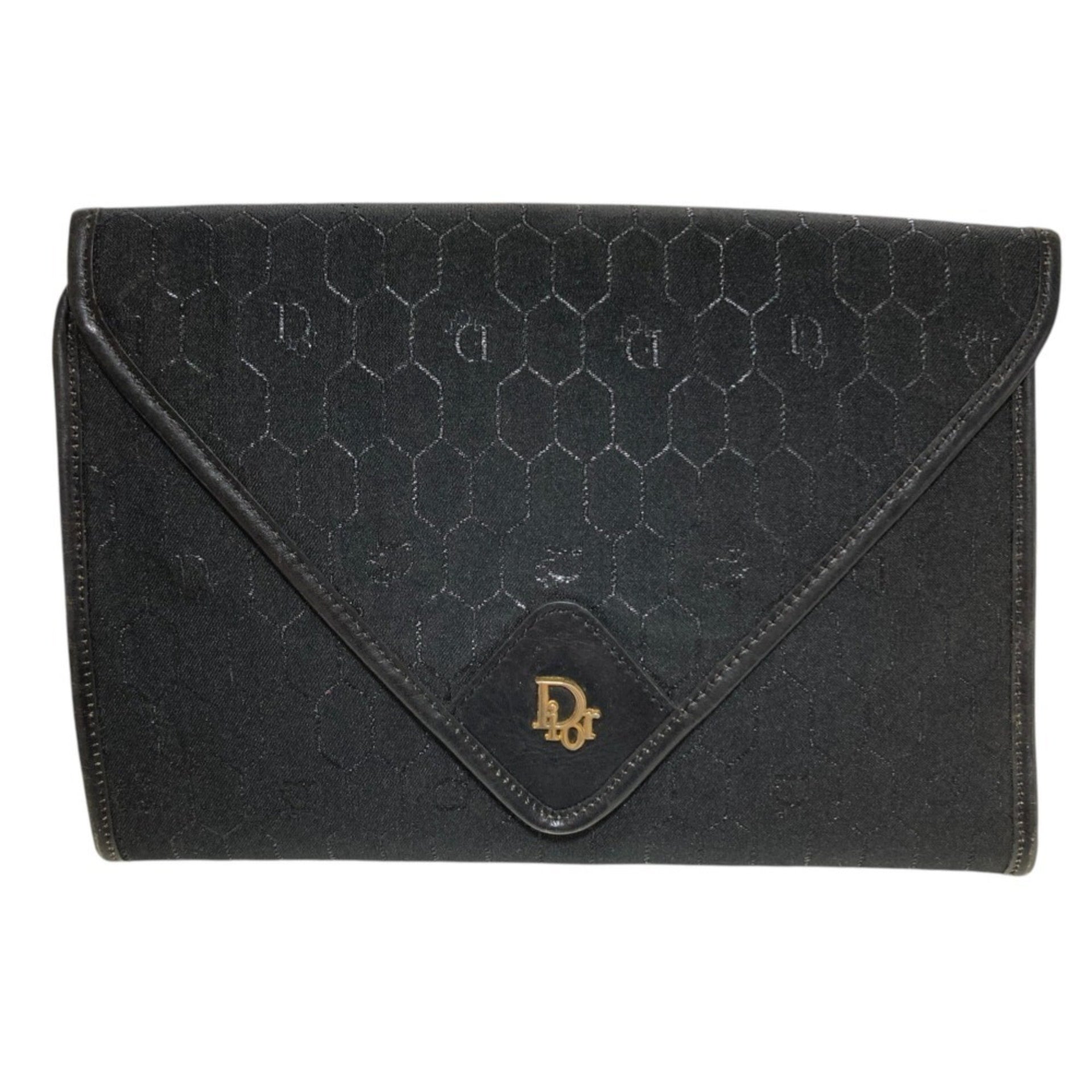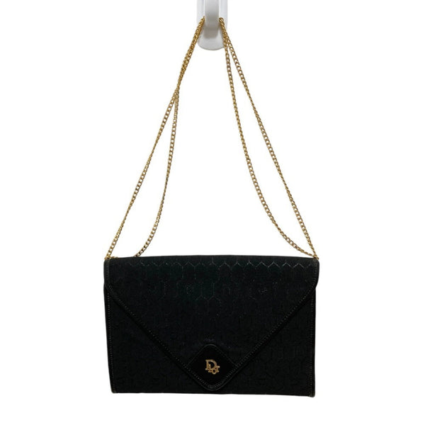 Christian Dior Vintage Chain Canvas Shoulder Bag Black Women\'s