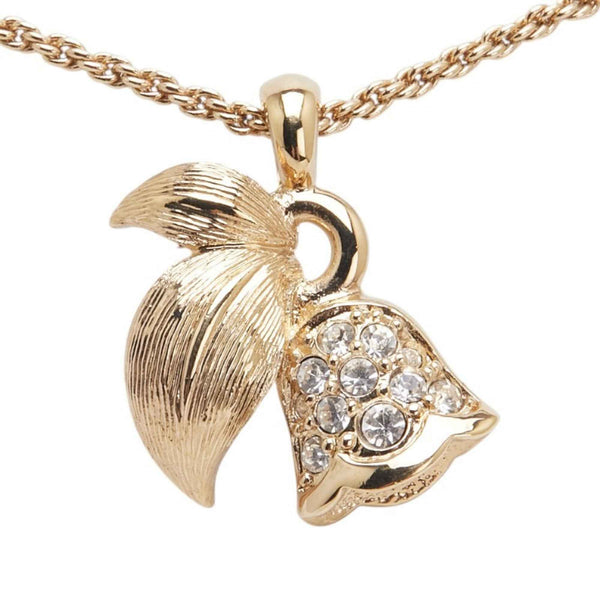Christian Dior Vintage Leaf Bell Motif Necklace with Gold Plated Rhinestones for Women