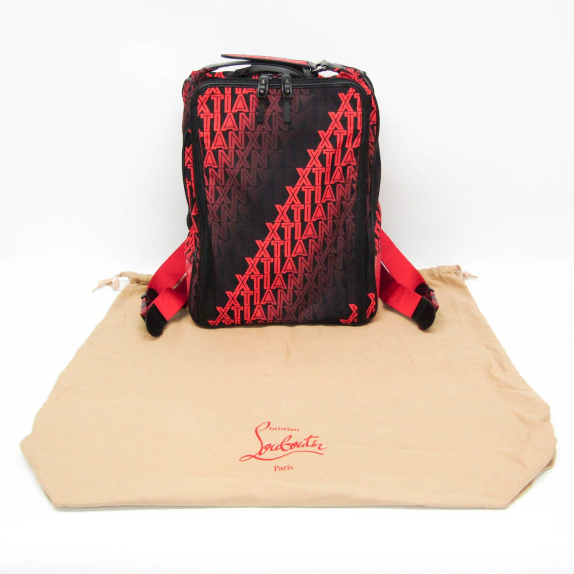 Christian Louboutin HOP\'N ZIP Backpack 3205344 Men\'s Nylon,Leather Backpack Black,Red Color