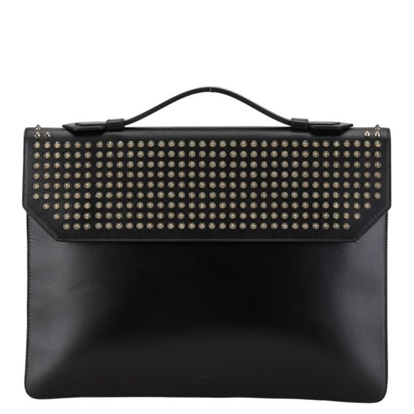 Christian Louboutin Studded Briefcase Business Bag Black Leather Men's